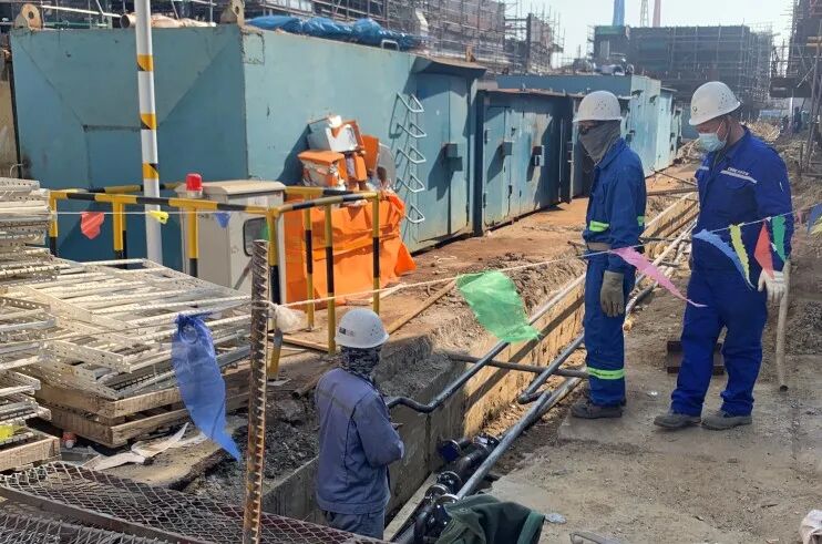 工务公司负责17.5万立方米LNG运输船1、2号船,16000TEU集装箱船10、11号船,FPSO-10项目及总组场地临时照明、通风,保障机舱、货舱加水排水工作。相关管理人员在现场进行人员、场地调配,科学安排施工方案,推进一岗多能,实现全岗位覆盖,保障生产有序进行。