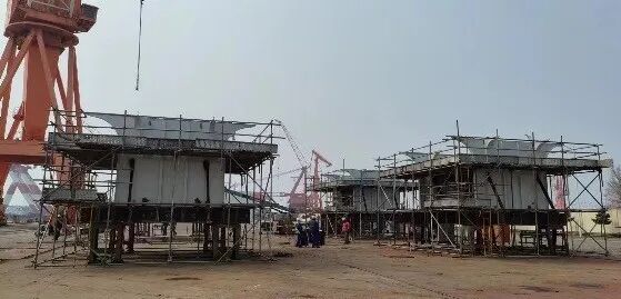 山船重工在修船舶20艘,修船工程量饱满。造船方面,抢抓6.5万吨散货船、11万吨原油船分段总组合拢、吊装等工程。7100TEU集装箱船6号船进行施工收尾和全船油漆美化工作,确保达到交船状态。3.7万吨散货船4号船快速进行搭载合拢,五一期间计划完成1000段吊装合拢,2008+2009段装配报验。