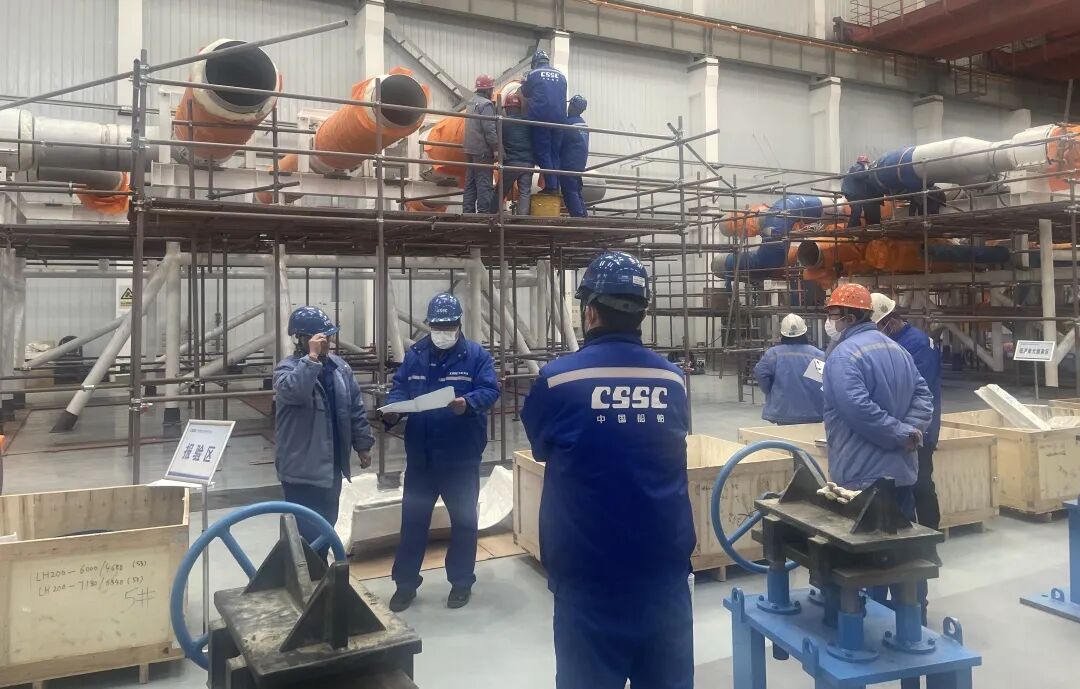 舾装公司开足马力,连续奋战,全力保证17.5万立方米LNG运输船1号船ZD31、ZD41、ZD42、ZD43低温单元的交付节点,为公司生产做好服务和保障。