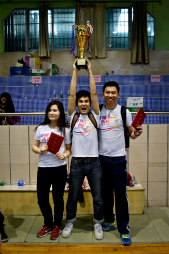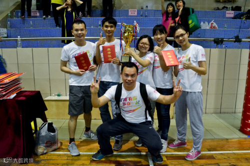 在全场运动员的注目礼下,我们捧起了属于我们的奖杯!