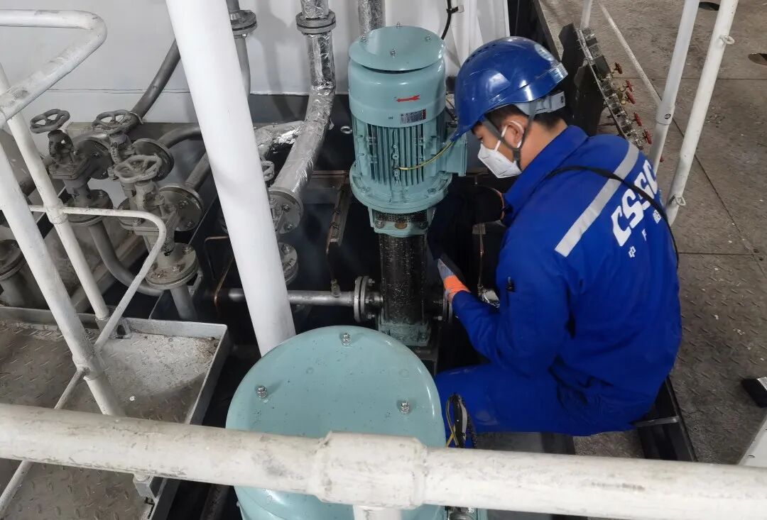 系统调试如期完成是实现目标的突破口,工程科突出系统为主、设备为辅的原则,制定包括甲板轮机设备、甲板系统、机舱系统、机舱轮机设备等主线调试计划,调试人员迅速进入战斗状态,每天早来晚撤,谁也不想拖进度的后腿。遇到困难不等不靠,主动创造条件开展调试工作:在蝶阀服务工程师无法按期到位的情况下,调试员许月仲主动站出来,带领团队成员说干就干,自制交验临时工装替代专用工装,小心翼翼进行燃油加注、压载舱打水等调试工作,凭借多年施工经验和扎实业务功底,碟阀调试交验一次性完成,有力确保主线生产连续。临近试航空调冷藏系统调试交验迫在眉睫,关键时刻调试员孙属胜与身在异地的服务工程师多次电话沟通确认,认真做好调试要点记录,从系统密性、清洁、真空、湿度、加装干燥沙到滤芯和冷剂充注等精心准备检查,再从通电调试、参数设置、变频器调试、压缩机组调试到冷库拉冷等一系列操作一气呵成,船东验收一次通过。