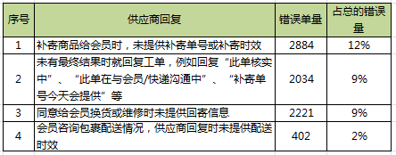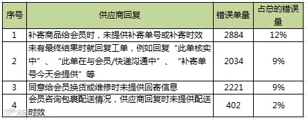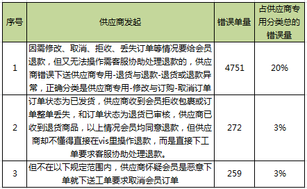 您好!由于很多供应商反馈出现工单回复不合格被客服打回的情况,所以供应链联合客服中心对近三个月的错误工单数据进行整理,以帮助大家分析最容易犯的错误点在哪里,应该如何改正。在下面的正文里,我们将从供应商常回复工单错误和供应商发起工单类型错误来详细介绍,请大家认真学习!