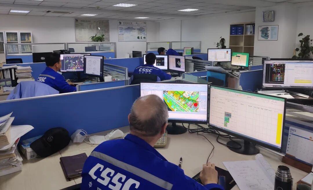 当前设计院多个项目及科研项目并行推进,各专业各科室五一期间力争在设计进度上取得突破。FPSO-8项目进入交船冲刺阶段,制定了详细的工作计划,全力配合施工现场;7500立方米二氧化碳运输船1号和2号船处于连续生产关键阶段;16000TEU集装箱船1号船和7100TEU集装箱1号船确保试航顺利进行。设计人员保节点、抢进度,有条不紊地做好各个项目的生产设计、出图任务等工作,全天候为施工部门提供技术支持,确保现场生产任务有序高效推进。