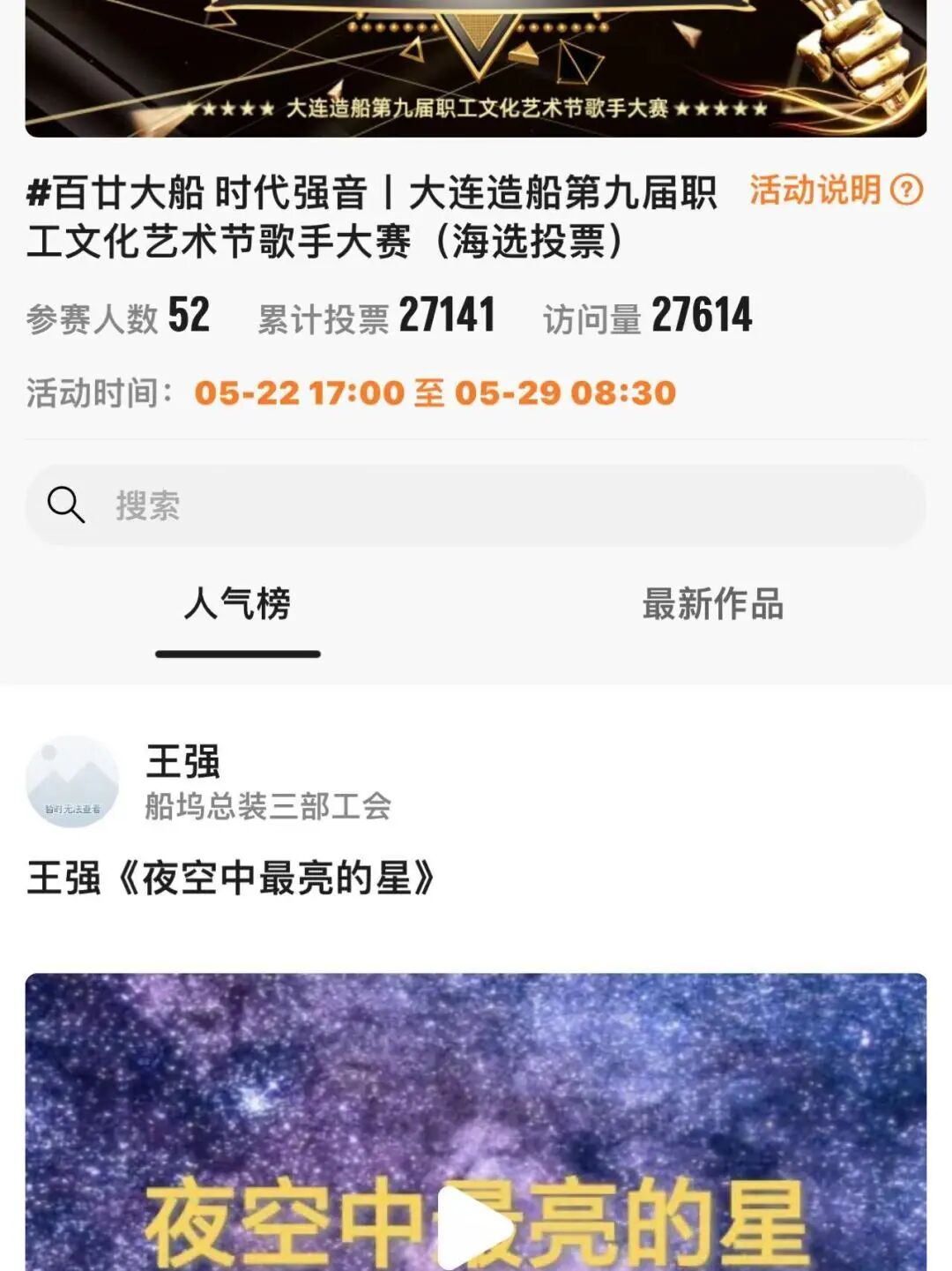6月9日,纪念中国船舶大连造船建厂125周年暨第九届职工文化艺术节系列活动——“百廿大船 时代强音”职工歌手大赛成功举办。此次歌手大赛由大连造船工会主办,歌唱协会承办,来自各基层工会的52位选手经过线上预赛选拔,最终有26位歌手脱颖而出,闯入决赛。