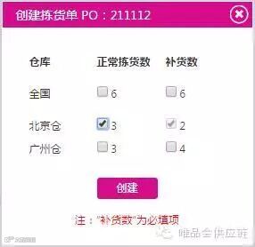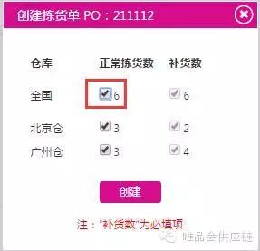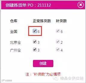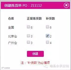 如北京仓错误关单,需要虚拟新建送货单,即可勾选”北京仓”的补货数据单独创建: