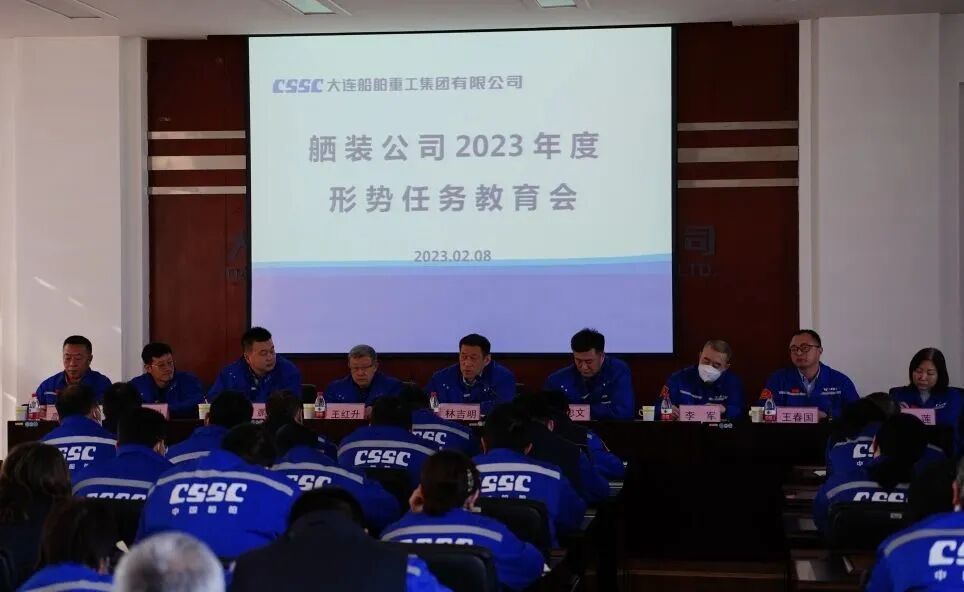 近日,大连造船副总经理丁一到装备公司开展形势任务教育。