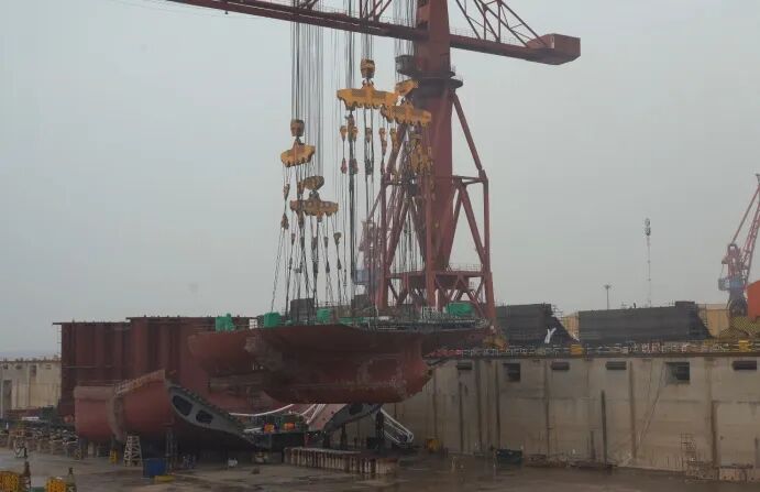 近日,大船天津承建的8.5万吨散货船1号船111C总组分段完成坞内合拢,为首制船艉部成型及照光节点打下了良好基础。