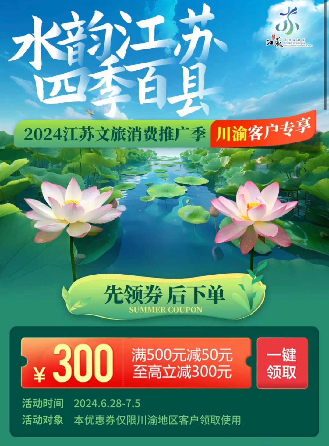 6月30日,2024年“水韵江苏·有你会更美”国内集中推广周活动将要走进山城重庆进一步带川渝游客领略江苏各个城市的独特风情和魅力,激发大家亲自去探寻江苏之美的热情。,途牛将继续带来精选夏季主题文旅产品,送上诚意满满的优惠政策,邀请川渝朋友走进“水韵江苏”,让更多江苏游客了解四川,读懂四川,也让四川游客们来到江苏,爱上江苏。