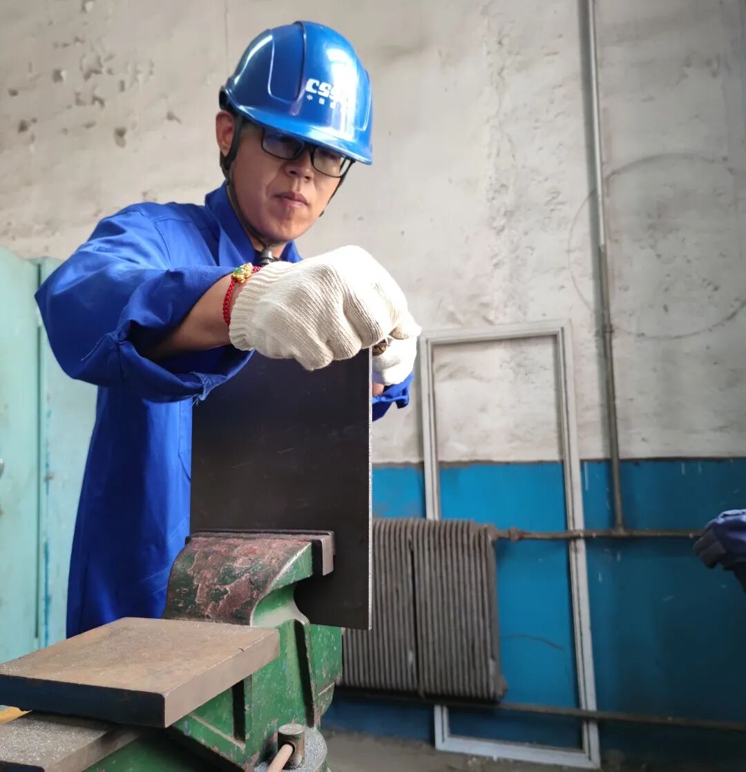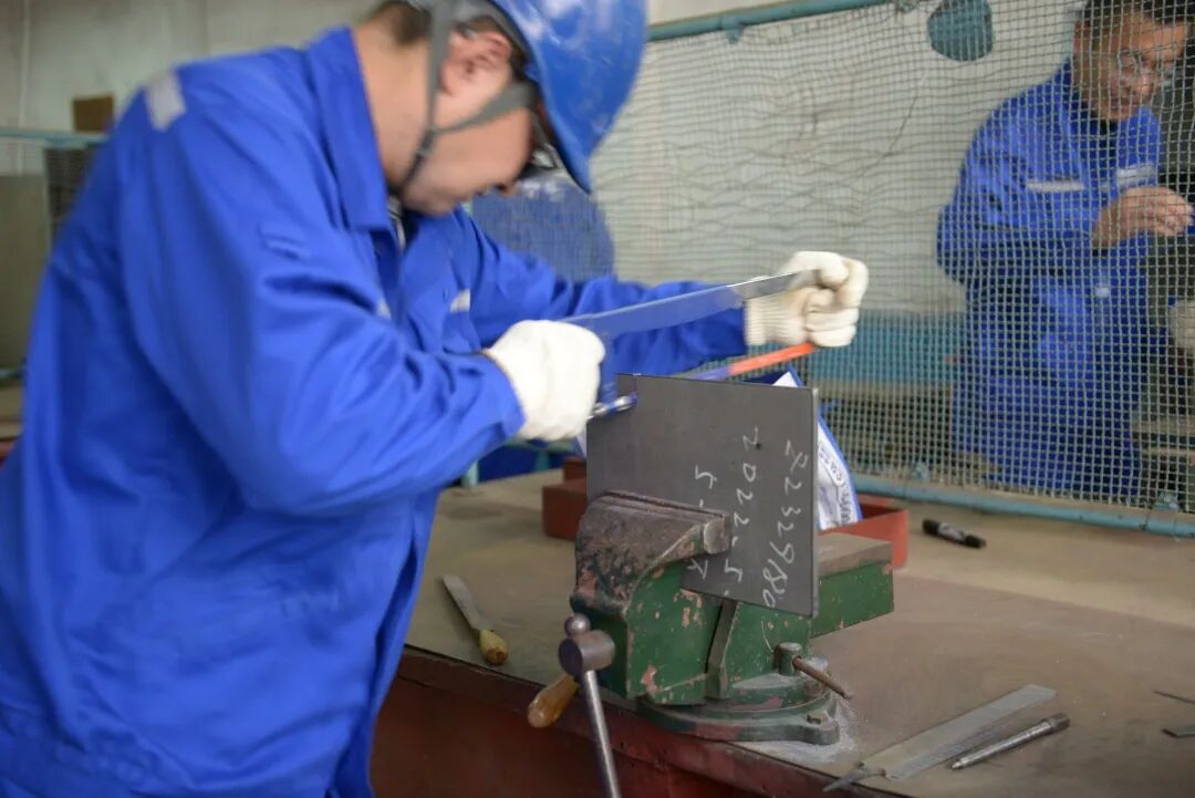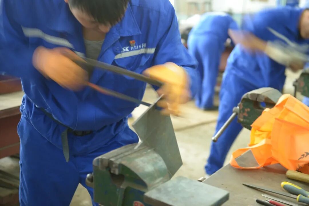 实操试题以钳工操作中的研锯锉磨为主要考点,以零件的装配精度为考核标准,重点考察参赛选手在钳工操作中的准确性和稳定性。比赛现场气氛热烈,选手们热情饱满,铆足干劲,操作过程中争分夺秒,纷纷拿出看家本领,或磨、或测、或量、或锯、或锉,全身心投入比赛,充分展示了大船集团船舶钳工高水平、高质量、高效率的动手能力和操作技艺。