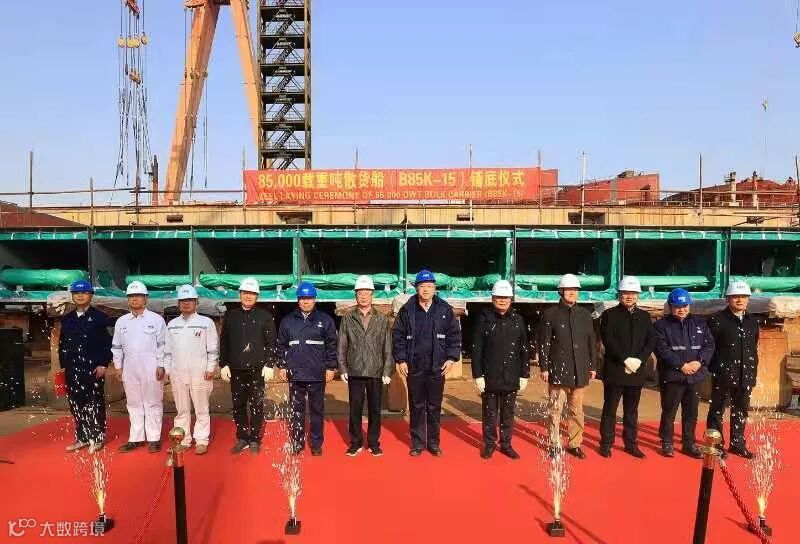 3月3日,8.5万吨散货船15号船举行铺底仪式