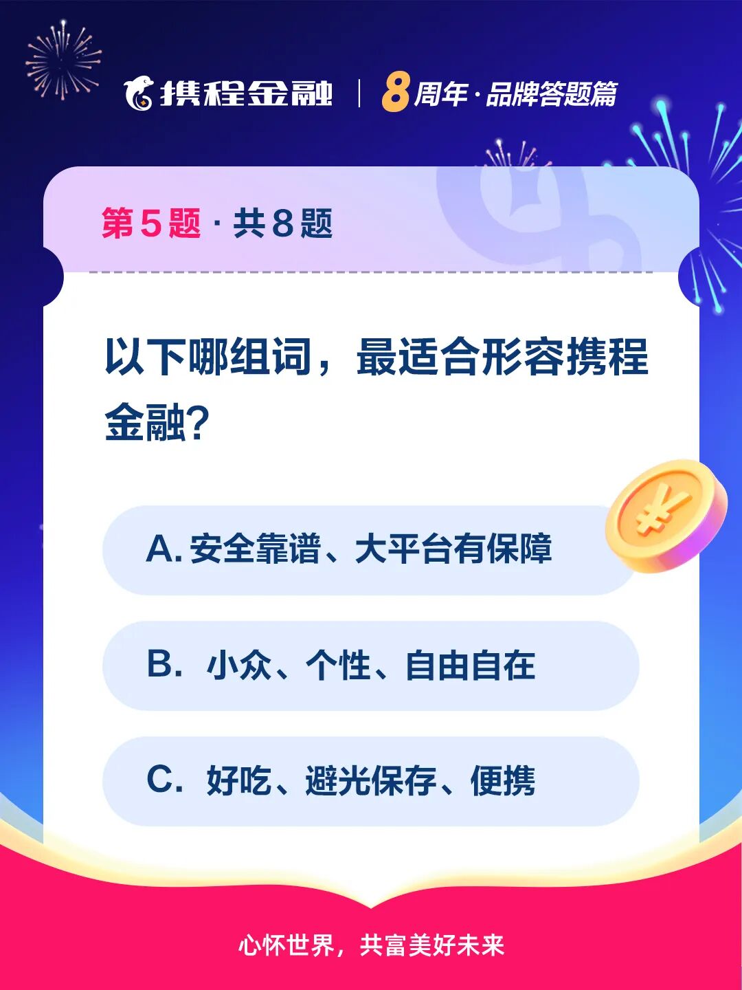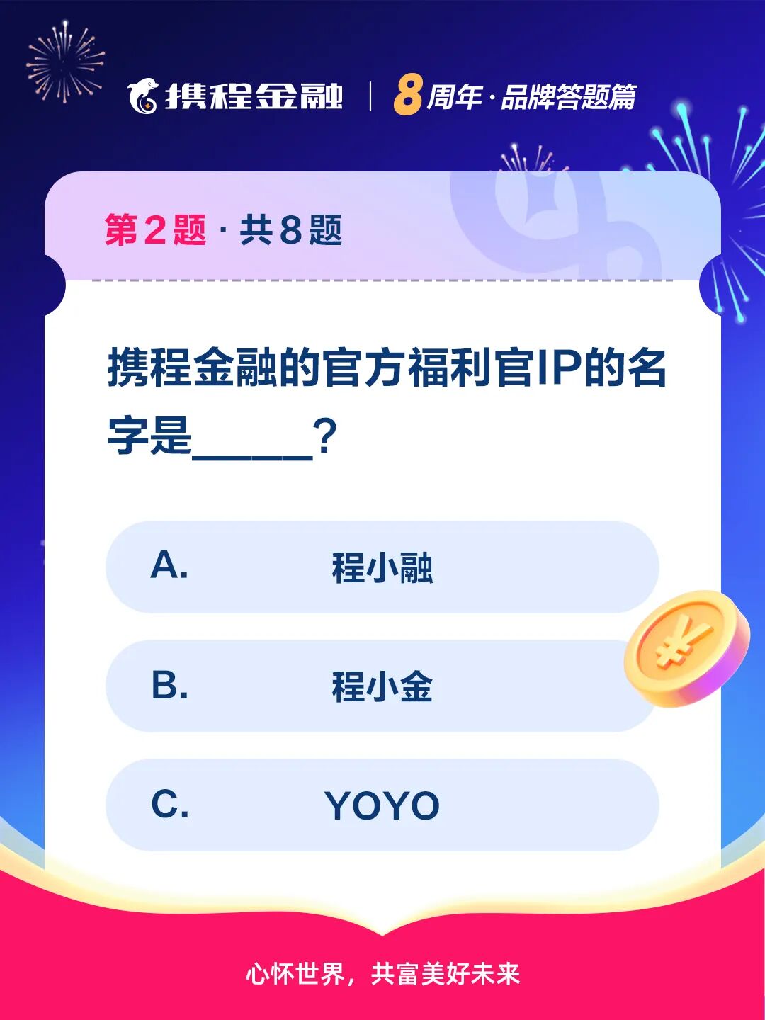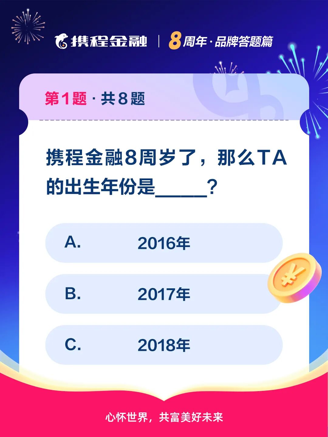 携程金融携程金融8周年啦,真爱粉们速速集合!快来答题赢奖品,让小金来测测你到底有多懂我!