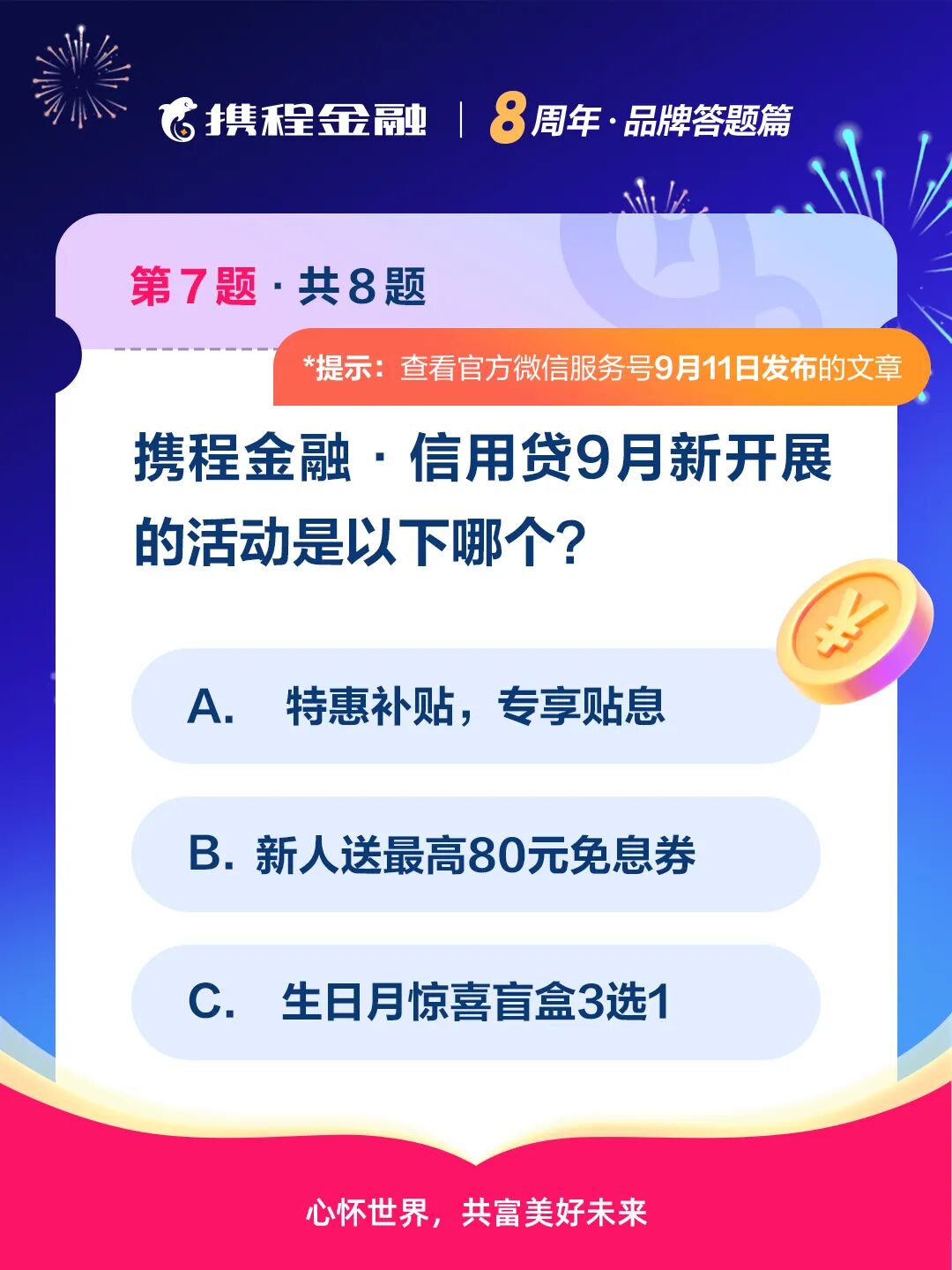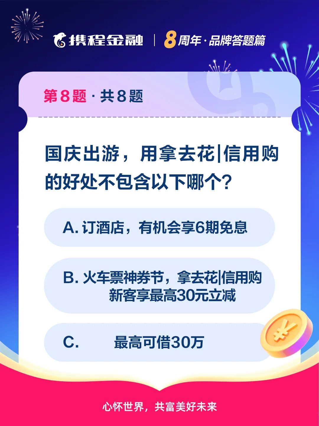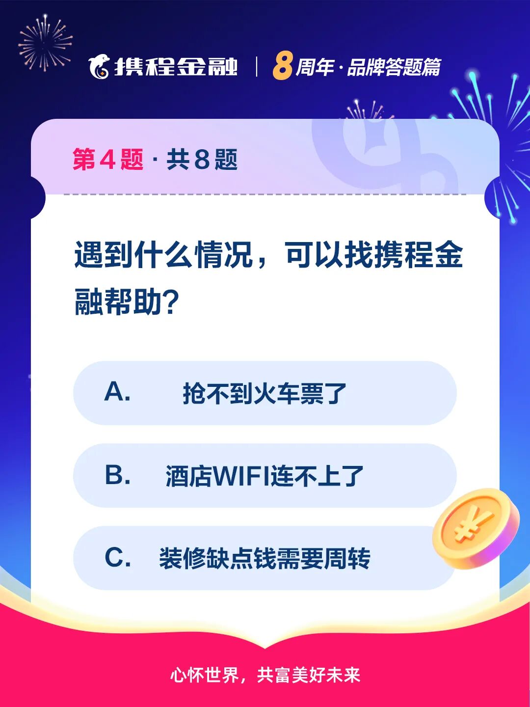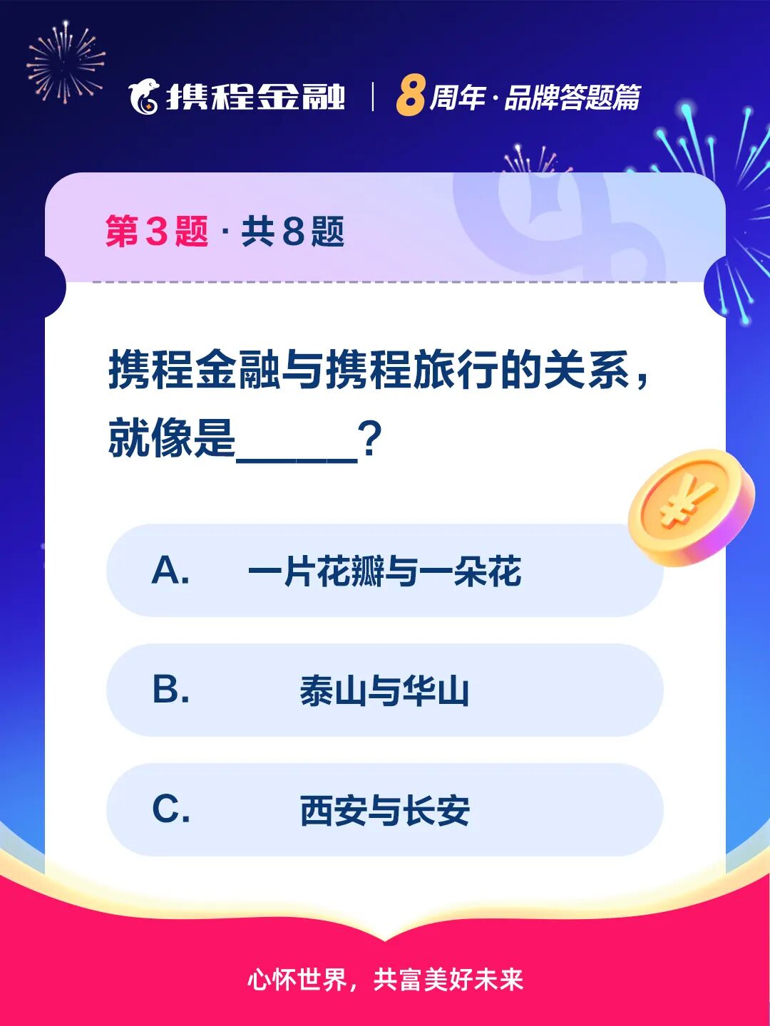 携程金融携程金融8周年啦,真爱粉们速速集合!快来答题赢奖品,让小金来测测你到底有多懂我!