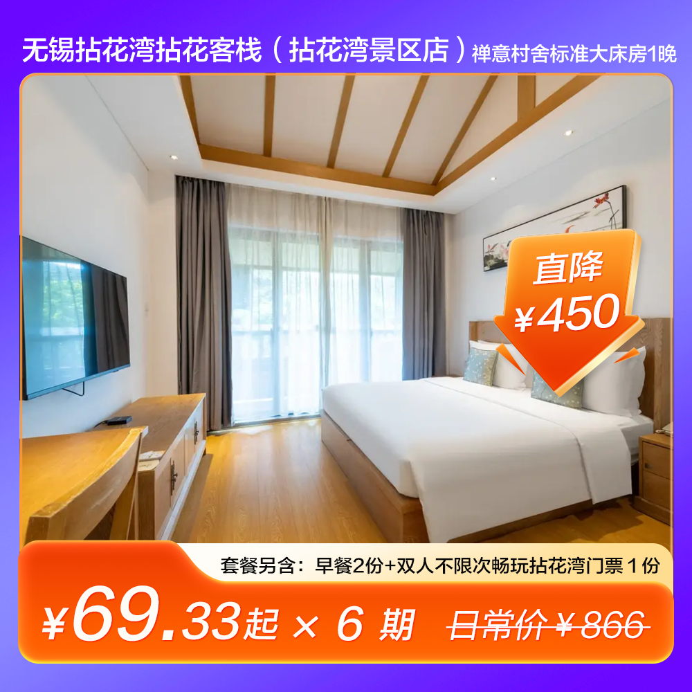 住进禅意世界!在景区内的12家主题客栈随机入住,推门见山景,双人无限次畅玩拈花湾!晚上水幕秀和无人机表演美到窒息,灵山大佛、太湖车程约20分钟即达~