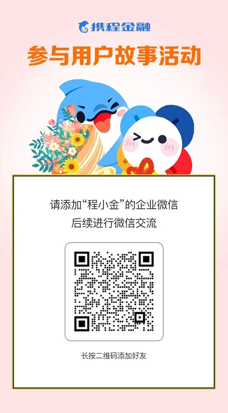 扫描下方二维码添加程小金企业微信,发送【奋斗故事】+您的携程金融手机号+您的故事(建议50字以上),则视为报名成功!