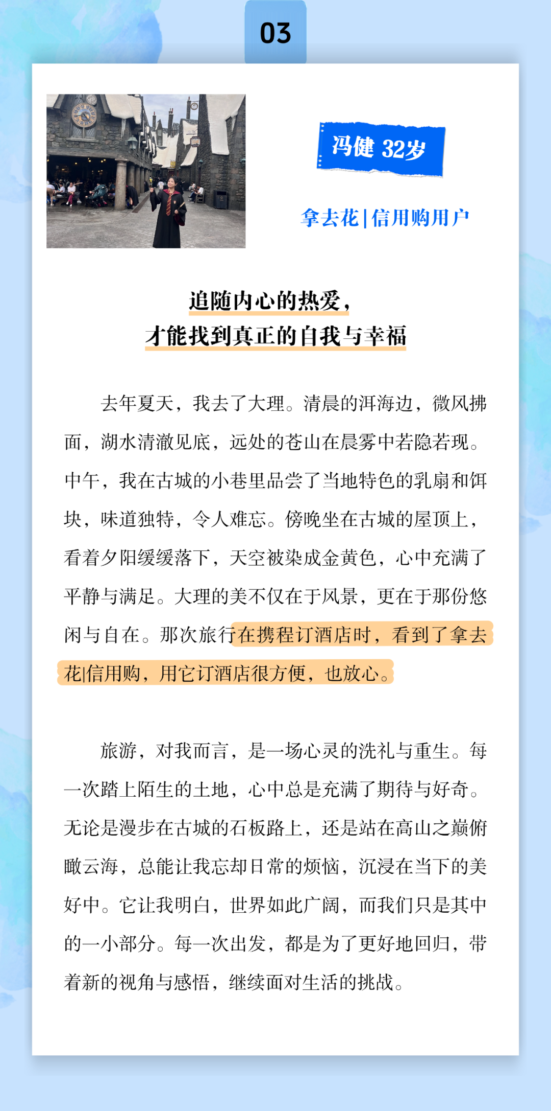 自发起旅行故事征集以来,我们收到了许多用户与携程金融一起走过的旅程分享,今天一起来看下这3位用户的故事。