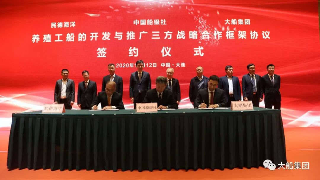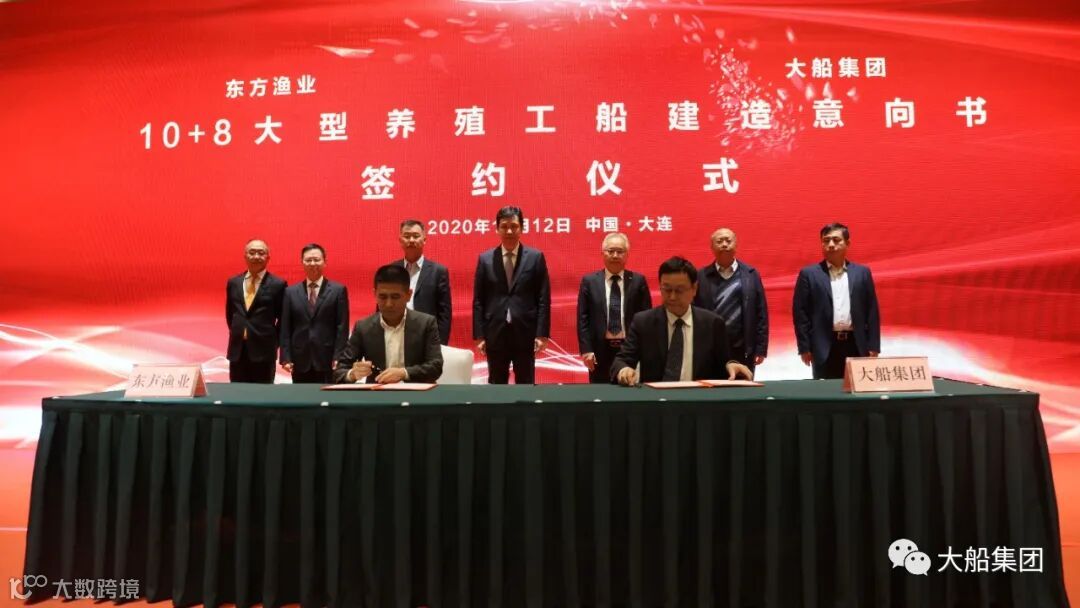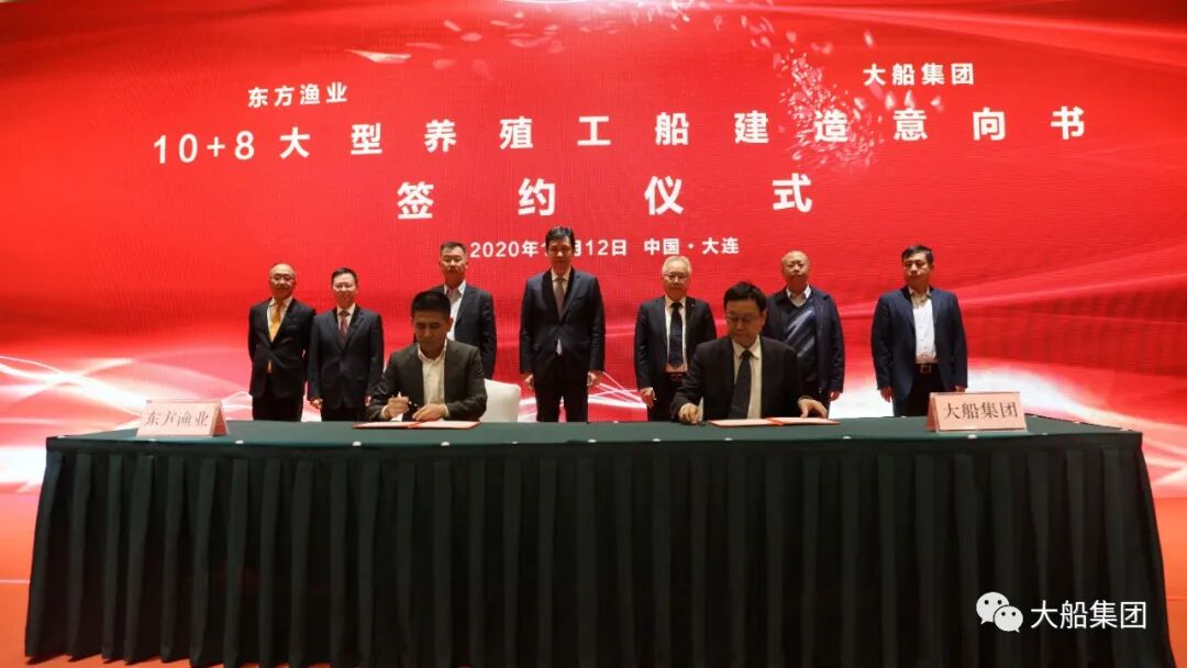项目签约仪式上,大船集团同东方渔业签署了10+8艘大型养殖工船建造意向协议。同时,大船集团又与民德海洋、中国船级社签署了三方战略合作协议,将就养殖工船产品的开发与推广,统一整合资源,长期共同发展,获得良好的市场影响力。