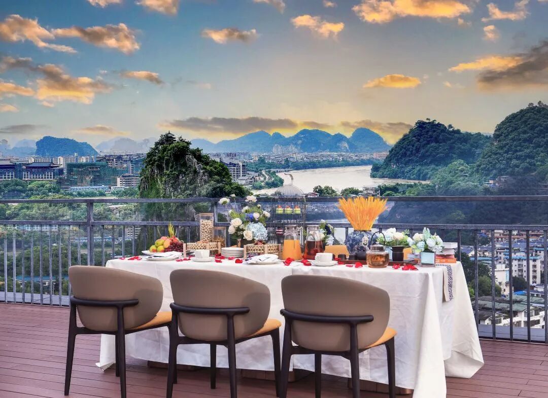 智卓·春天印象大床房(金可儿床垫+静音玻璃)1晚+360°漓江瞰景餐厅欢乐双人自助下午茶1份+迷你吧1份+晚安暖胃粥1份+鸡尾酒1份+民族服饰体验1份