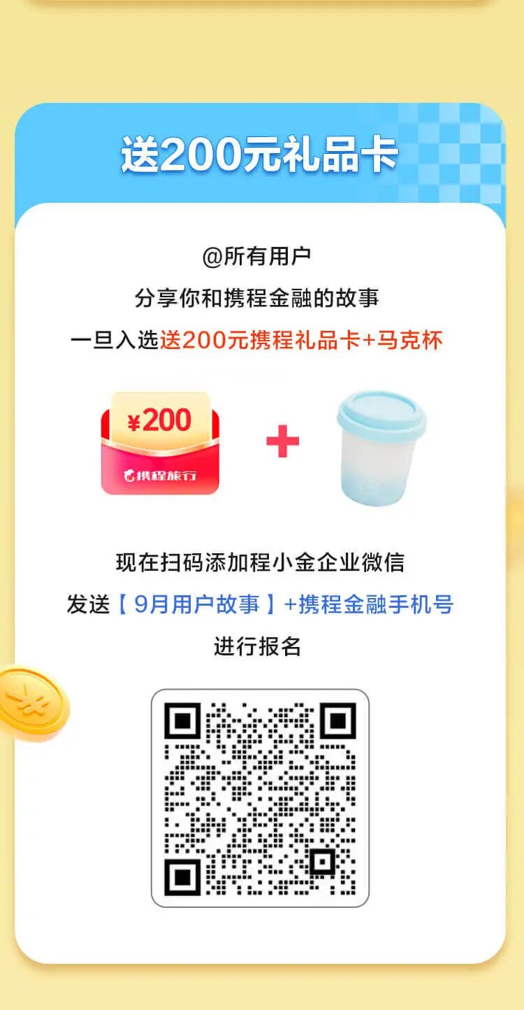 9月10日前抽取3位用户每人送30元携程礼品卡