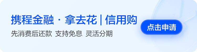 *先囤后付功能具体是否支持请以页面展示为准;文中提到的拿去花|信用购页面由携程金融开发,由拿去花|信用购为用户提供信用消费服务。请您理性借贷、合理消费,选择正规渠道使用携程金融相关服务。
