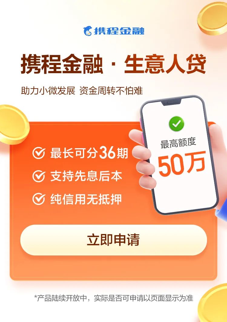 1. 携程金融生意人贷业务申请仅限官方渠道,申请过程中不收取任何费用。
