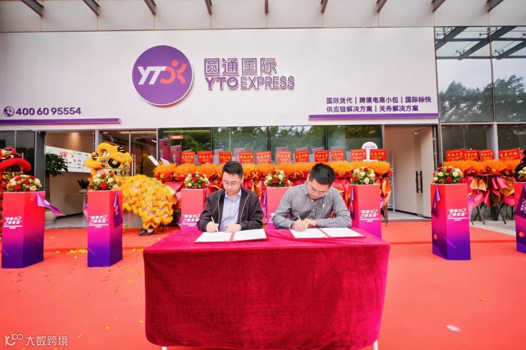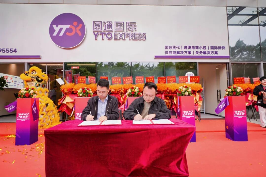 在开业仪式现场,圆通与泉州嵘佳企业管理咨询有限公司、泉州市禾福国际物流有限公司分别就东南亚海运全链路到门服务和日本小包业务签署战略合作协议。