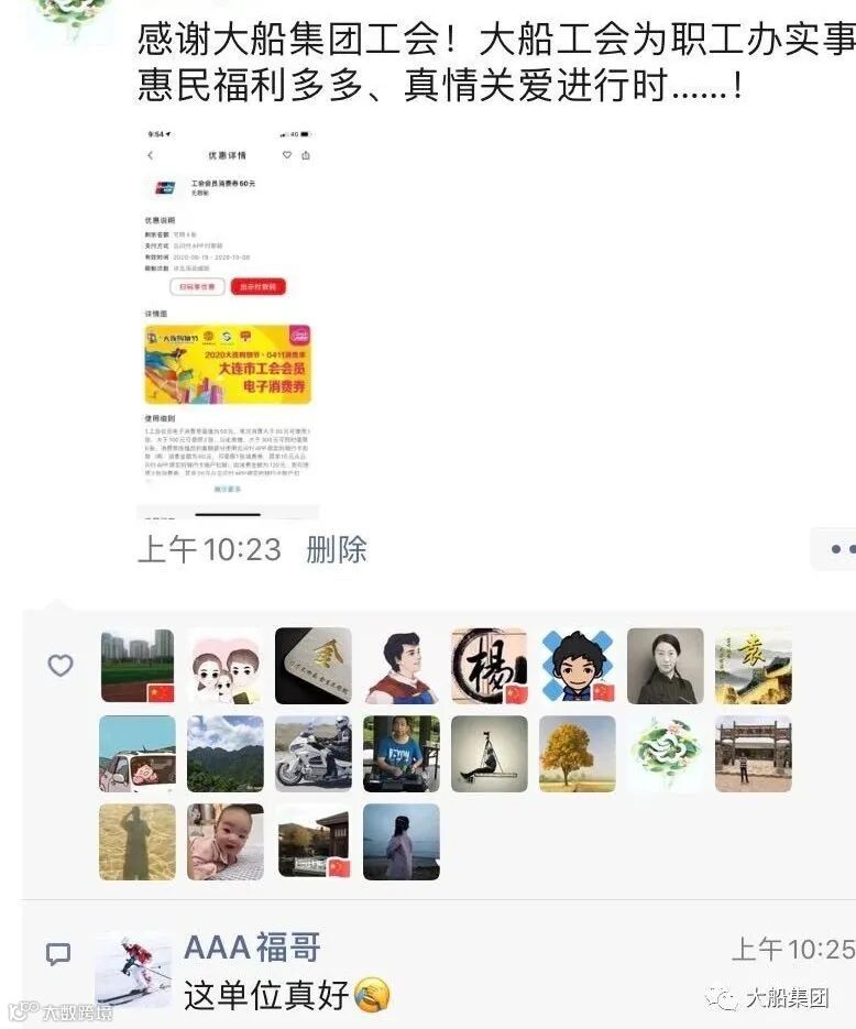这次活动的开展,是大船集团工会落实“献爱心、送温暖、鼓干劲”工作主线,响应市委市政府全面恢复我市经济社会秩序的号召和落实大连市总工会引导工会会员“参与消费、繁荣经济、促进就业”活动通知精神,助力大连经济回暖的积极行动,让广大会员在新冠疫情带来的“经济寒冬”中,感受到工会组织的亲切关怀和暖心问候。