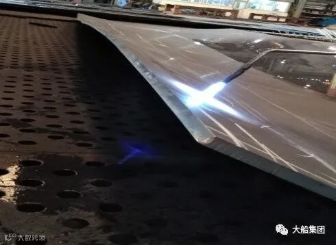 钢加公司采用线条型加热法以平行于板边方向进行加热矫正,对照样板在板材曲率不足处以600度左右的温度进行加工,经几道加热后消除了剩余直边的同时,纵向呈现正弯状态,既帮助冷加工解决了横向曲率不足的问题,又间接替代了部分或全部的水火弯加工过程,起到一举两得的效果。