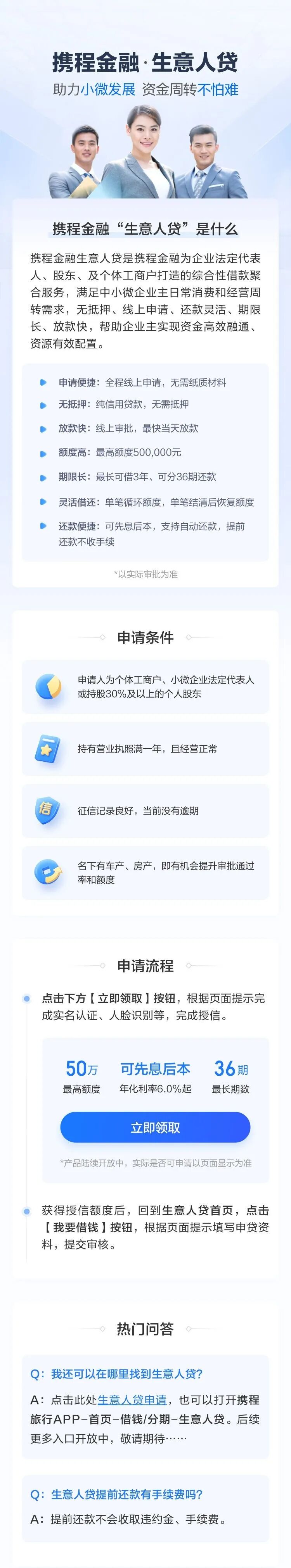 携程旗下金融服务平台,额度可高至30万,仅需3步快速借款,安全正规。信用贷便捷贷款,分期旅行先出行后还款,资金周转用生意人贷,福利活动,这里都有。