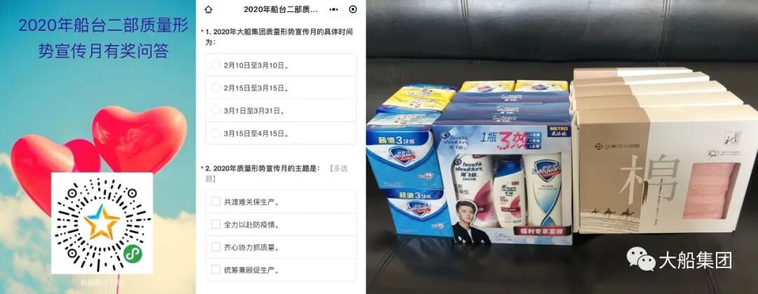 为进一步夯实质量管理基础,中国船舶集团所属大船集团于3月份开展以“全力以赴防疫情,统筹兼顾促生产,齐心协力抓质量”为主题的质量形势宣传月活动。宣传质量形势,树立质量理念,提高质量意识,为全面完成2020年各项生产目标提供坚实保障。