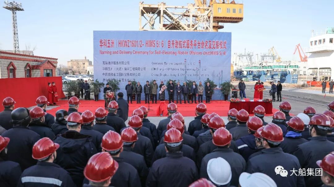 12月18日,大船集团渤船重工为华科五洲天津海洋工程有限公司建造的华科1号、2号自升助航式作业平台同时举行命名交船仪式。