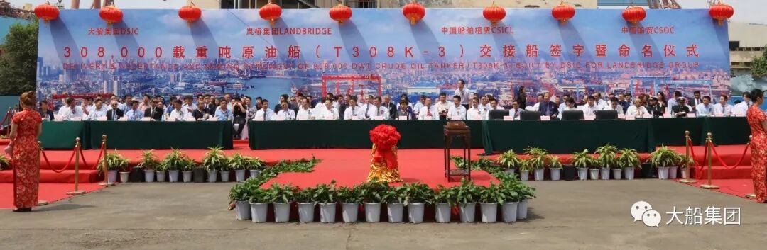 8月6日,大船集团为岚桥集团建造的30万吨VLCC“瑞昇”号顺利交付,大船集团、岚桥集团、中国船贸租赁、中国船贸四方代表在交接船证书上签字。