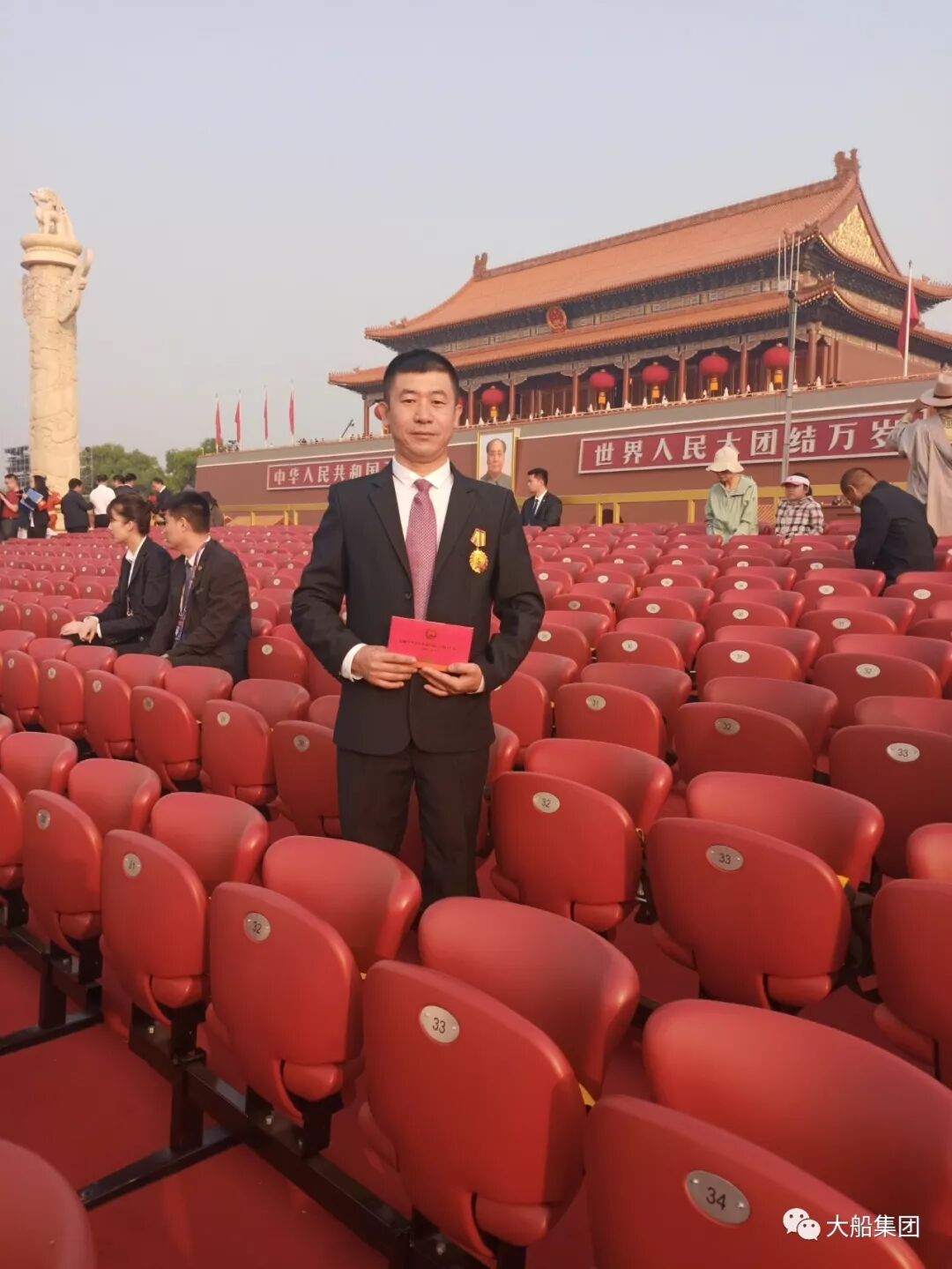 10月1日,大船集团钢构公司员工段晓辉受国家人力资源和社会保障部邀请,作为辽宁省4位全国先进模范人物代表之一,参加国庆70周年观礼活动。