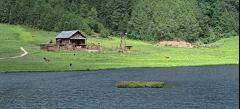 隐于山中、植被茂密、水塘镶嵌、牛羊成群,天灯海坪就这样遗世而独立,很难不想骑上一匹“小可爱”在大草场上撒野!