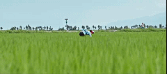 赤脚在田里追蜻蜓追到累了