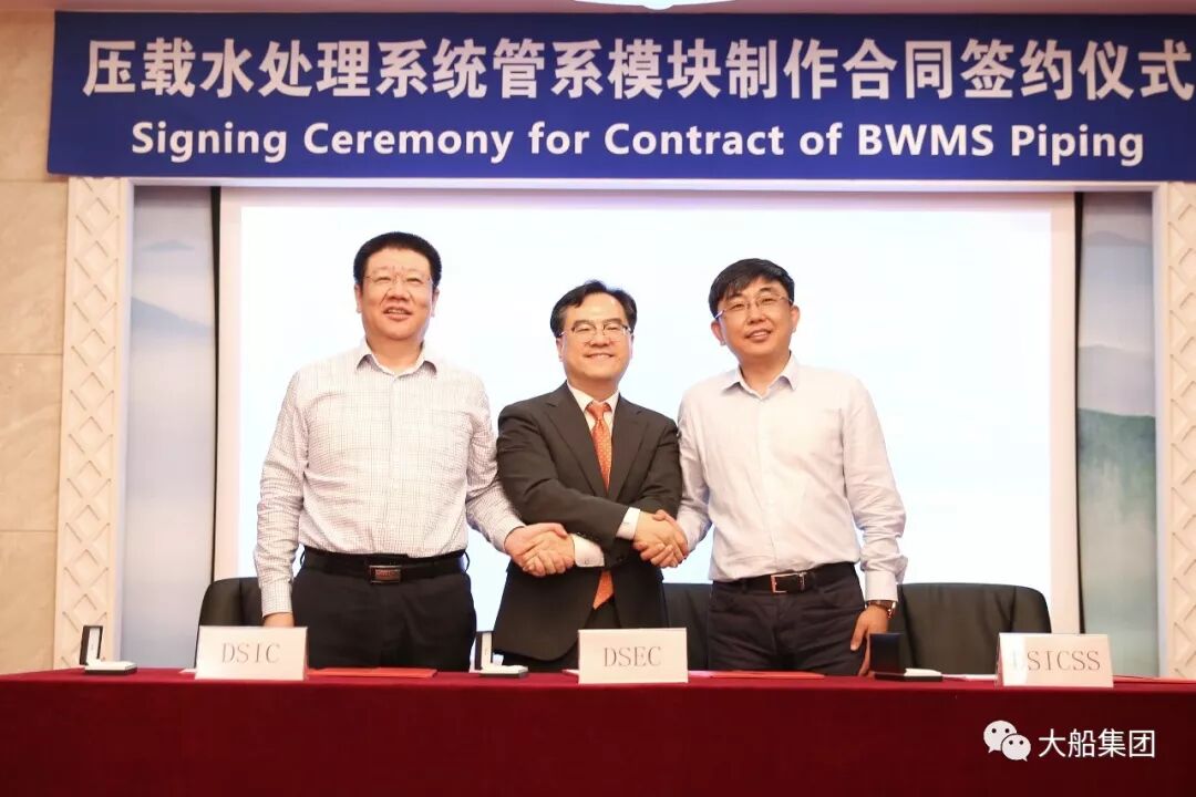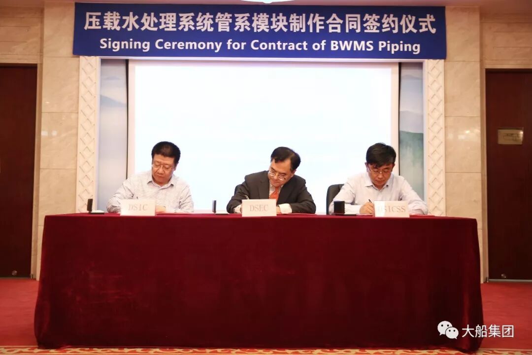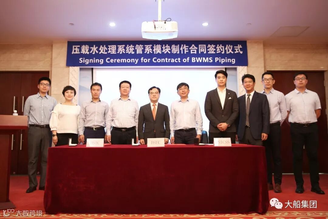 6月28日,大船集团举行压载水处理系统管系模块制作合同签约仪式。大船集团副总经理邓昌连及有关部门负责人参加签字仪式。