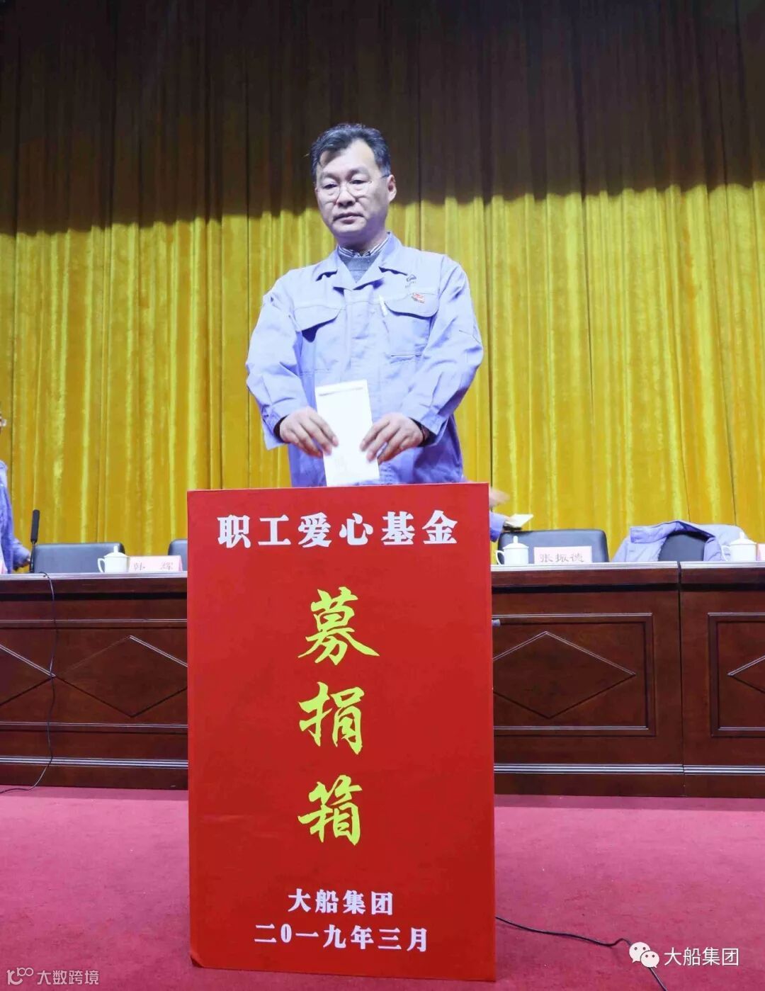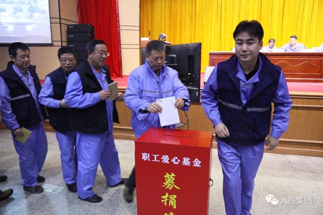 在捐款过程中,大船集团领导和各单位代表依次将一份份满载着爱心的善款郑重地投入红色捐款箱中,爱心捐款仿佛一条条涓流汇入爱的海洋,映衬着每一个富有爱心的大船人的善意面孔,凝结成百年大船团结协作的美好缩影。