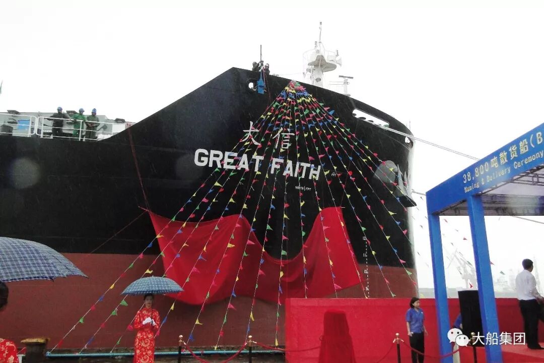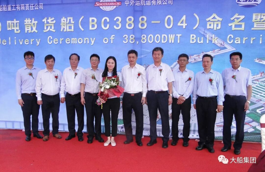 7月24日,大船集团山船重工为中外运航运有限公司建造的第四艘3.88万吨散货船命名交付。中外运航运有限公司董事总经理李桦,大船集团党委委员、山船重工总经理姚洪山等出席交船仪式。江南女士命名该船为“大信”号。