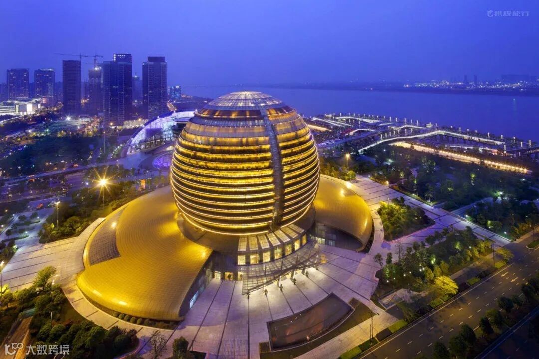 外观实在太吸睛,金色球体与对面月牙形的杭州大剧院相呼应,内部设计有种迪拜酒店的壕气儿,巨大的穹顶中央,还能找到仰望星空的浪漫感。还有超炫的ins网红电梯,一溜儿的小哥哥小姐姐来这儿拍大片。