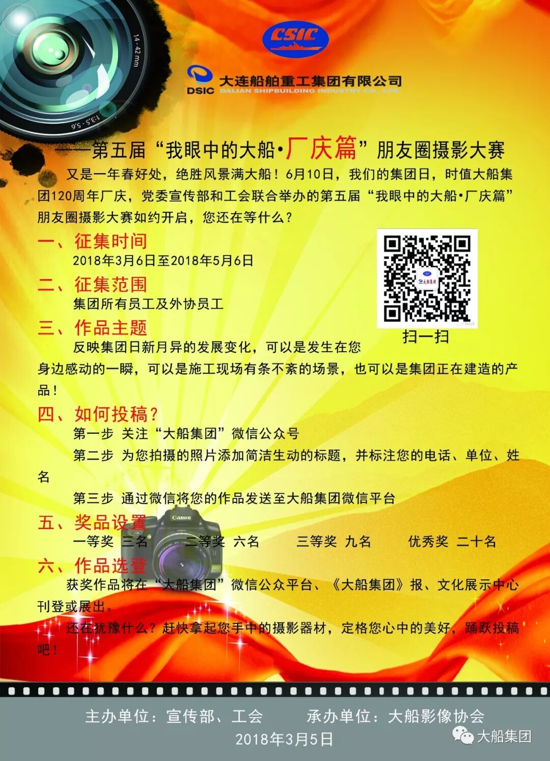 导读:第五届“我眼中的大船·厂庆篇”朋友圈摄影大赛开始啦