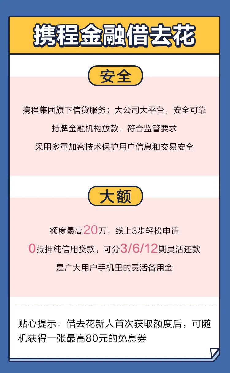 携程旗下金融服务平台,额度可高至30万,仅需3步快速借款,安全正规。信用贷便捷贷款,分期旅行先出行后还款,资金周转用生意人贷,福利活动,这里都有。