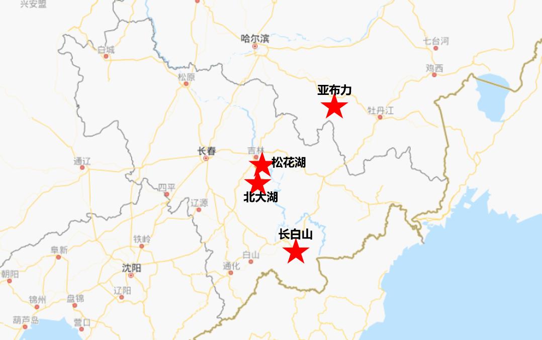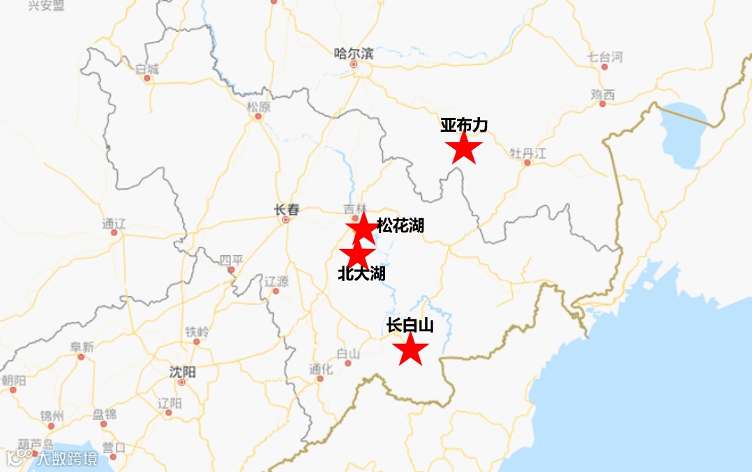 东北条件好、开发得比较完善的雪场,主要集中在四大区域:长白山、亚布力、北大湖、松花湖。