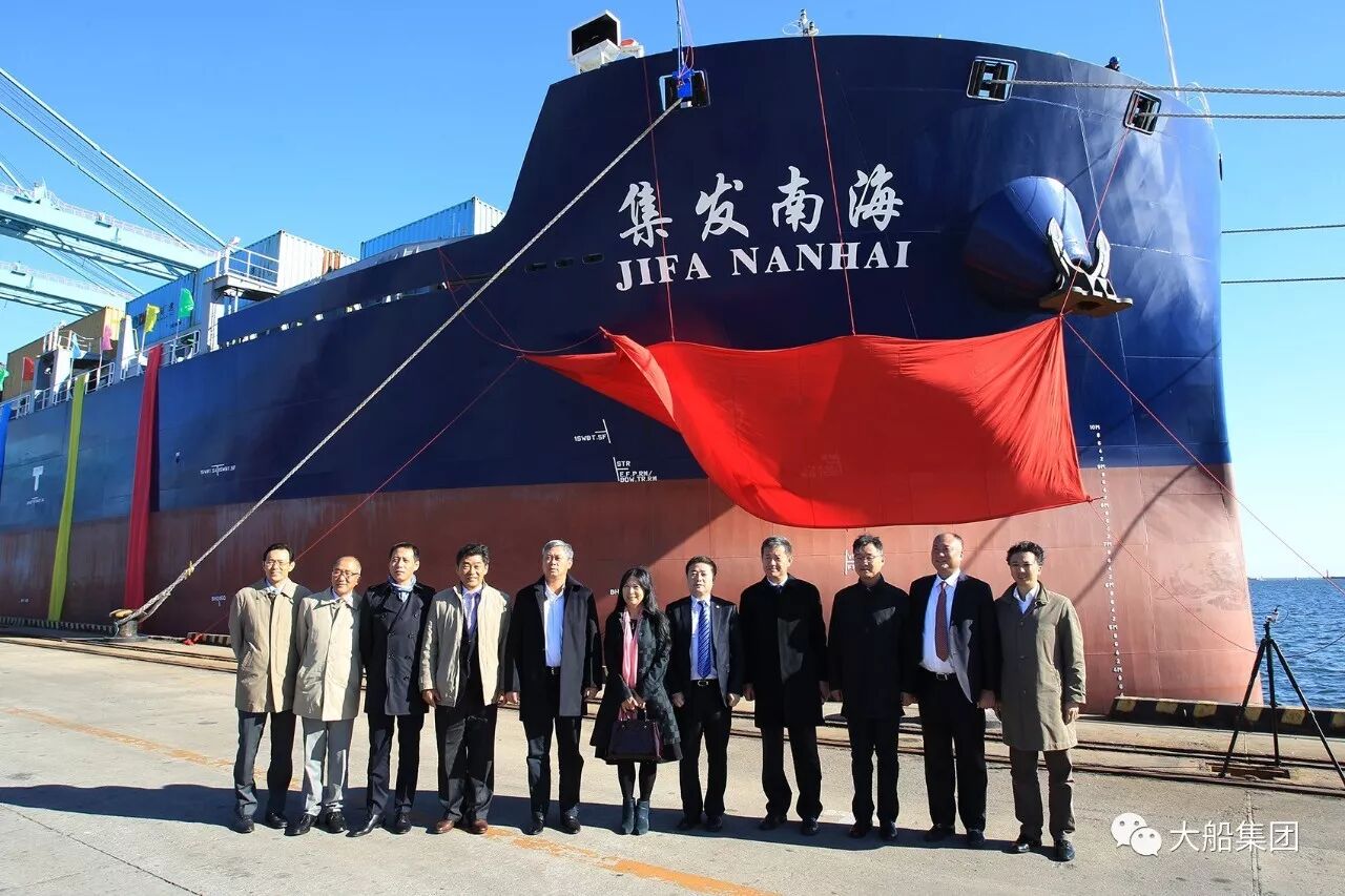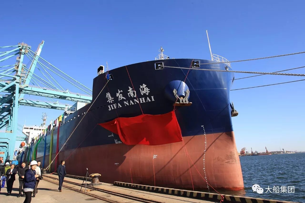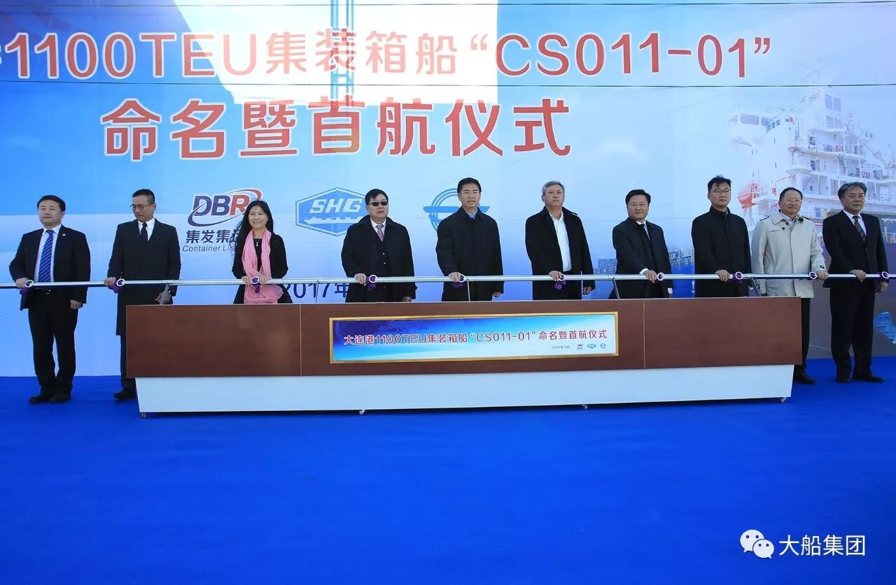 11月10日,大船集团山船重工为大连港集团建造的第一艘1100箱集装箱船“集发南海”号在河北秦皇岛港集装箱码头举行了命名暨首航仪式。秦皇岛市常务副市长薛永纯、大连港集团董事长张乙明、河北港口集团总经理刘广海、秦皇岛海洋渔业局局长陈小虎,大船集团领导刘征、杨志忠、姚洪山以及相关部门负责人出席了命名暨首航仪式。