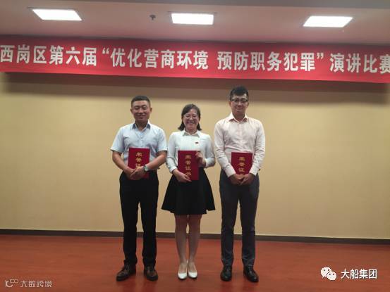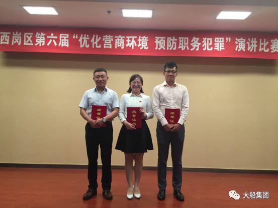 9月12日,大连市西岗区第六届“优化营商环境 预防职务犯罪”演讲比赛正式开赛,大船集团设计院程晓欧荣获一等奖,船坞二部陈洋荣获优秀奖,船台二部陆海涛荣获纪念奖。