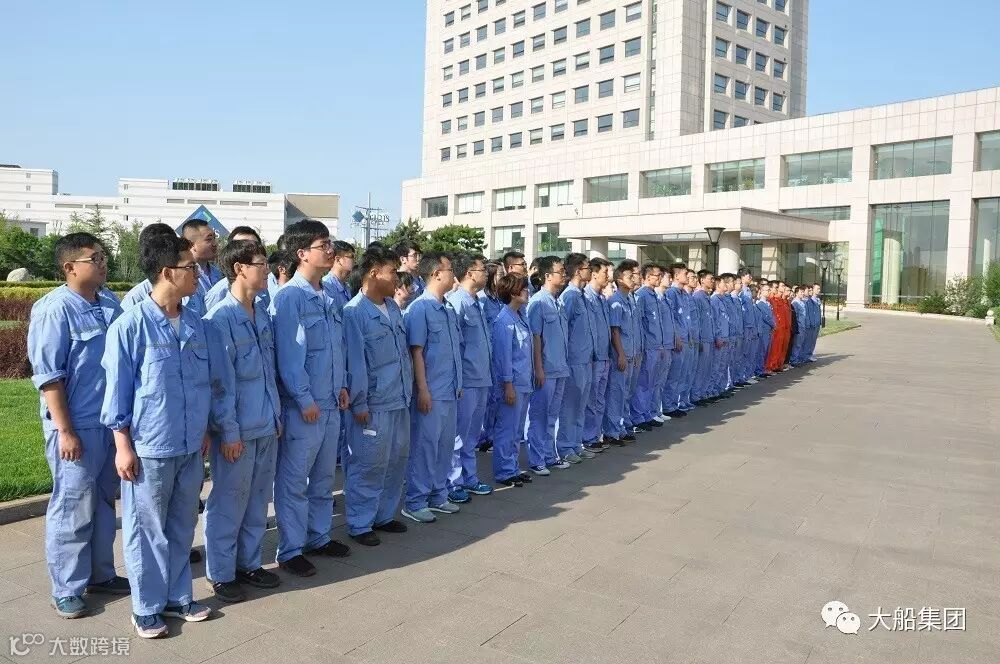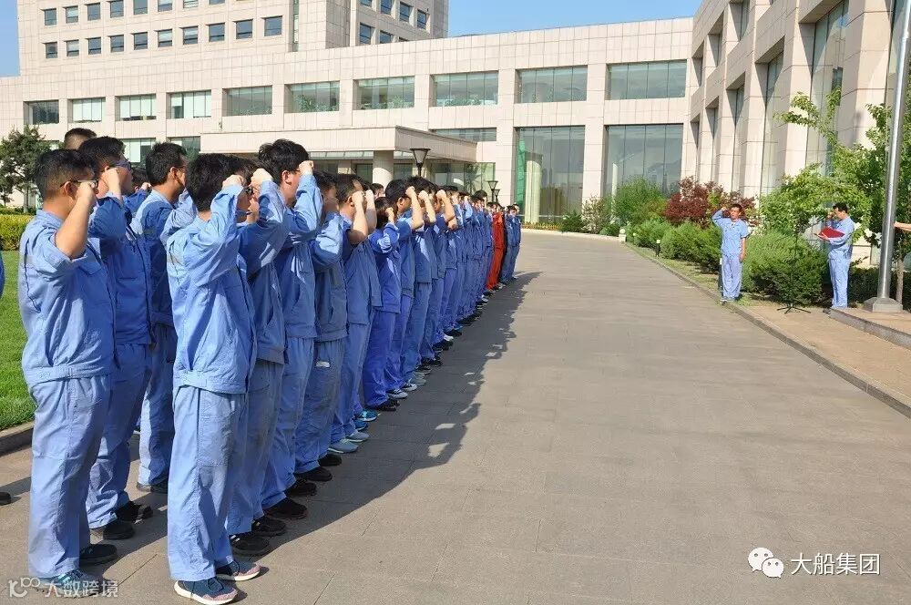 上午7点40分,新员工佩戴好大船集团徽章,在科研综合楼前广场站成整齐的队伍。集团劳模护卫着国旗,站立在升旗台上。全场一片肃静,等待着升旗仪式这一神圣时刻。
