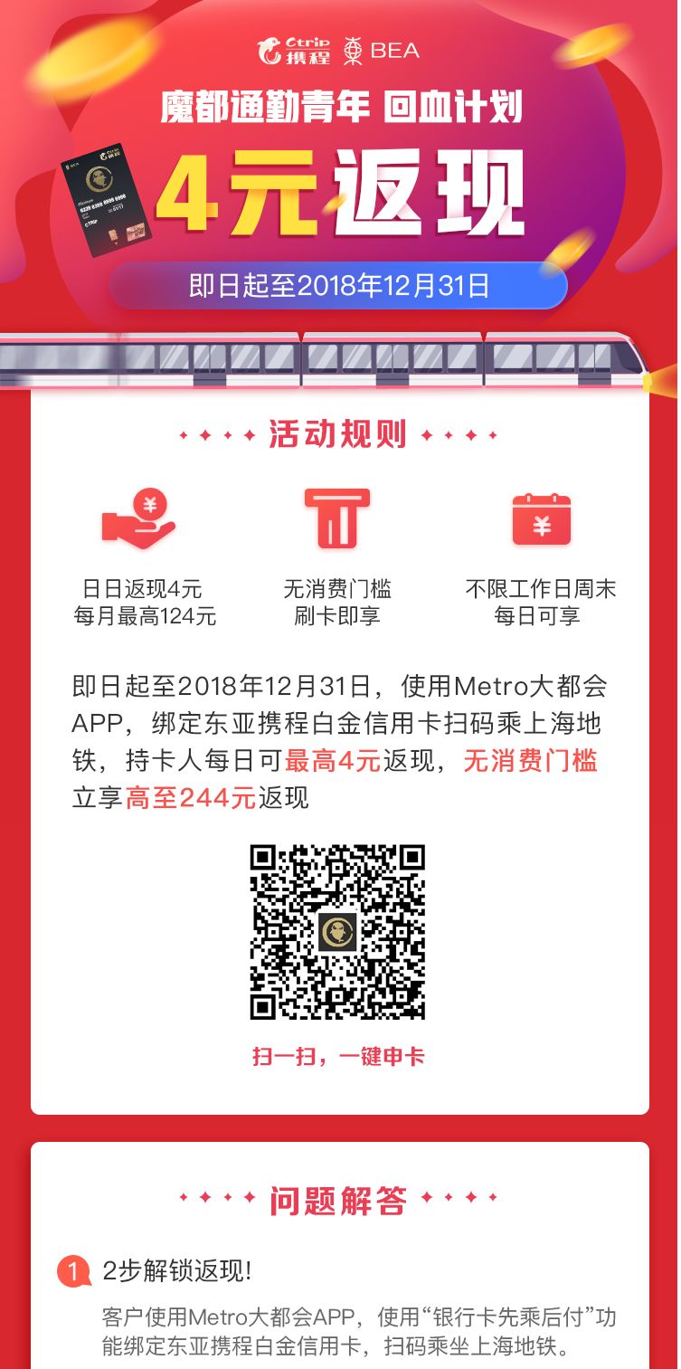 福利 | 地铁每日返现4元,只需一步火速上车!