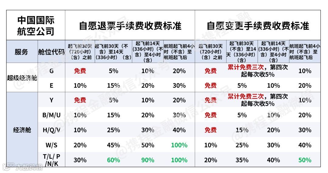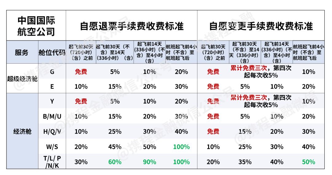 *退改签手续费的信息来源于中国国航官网,携程金融整理