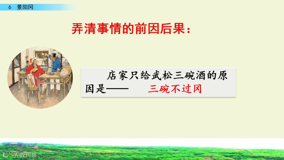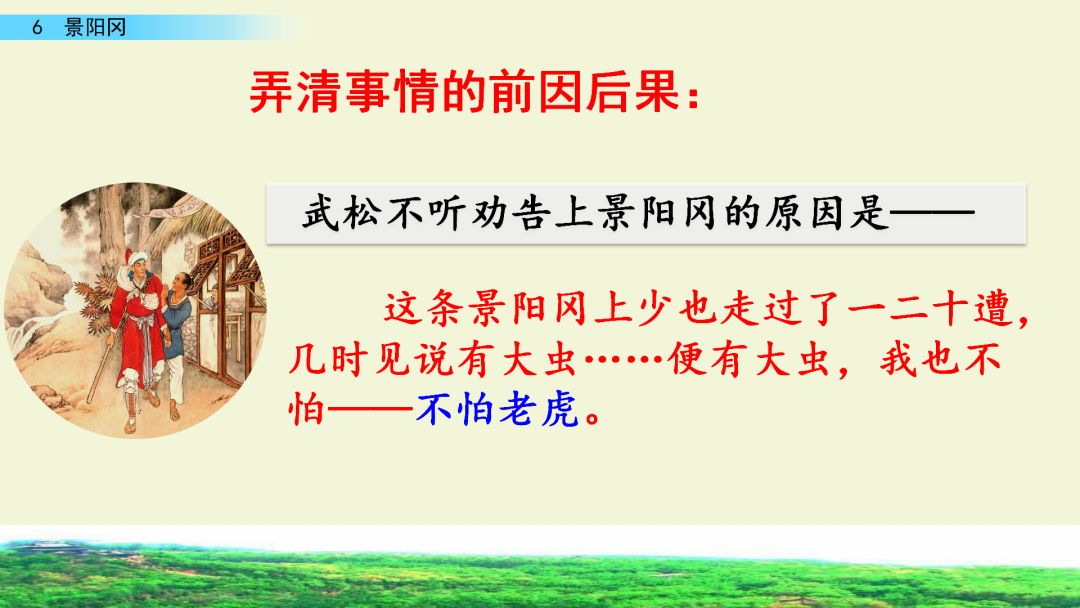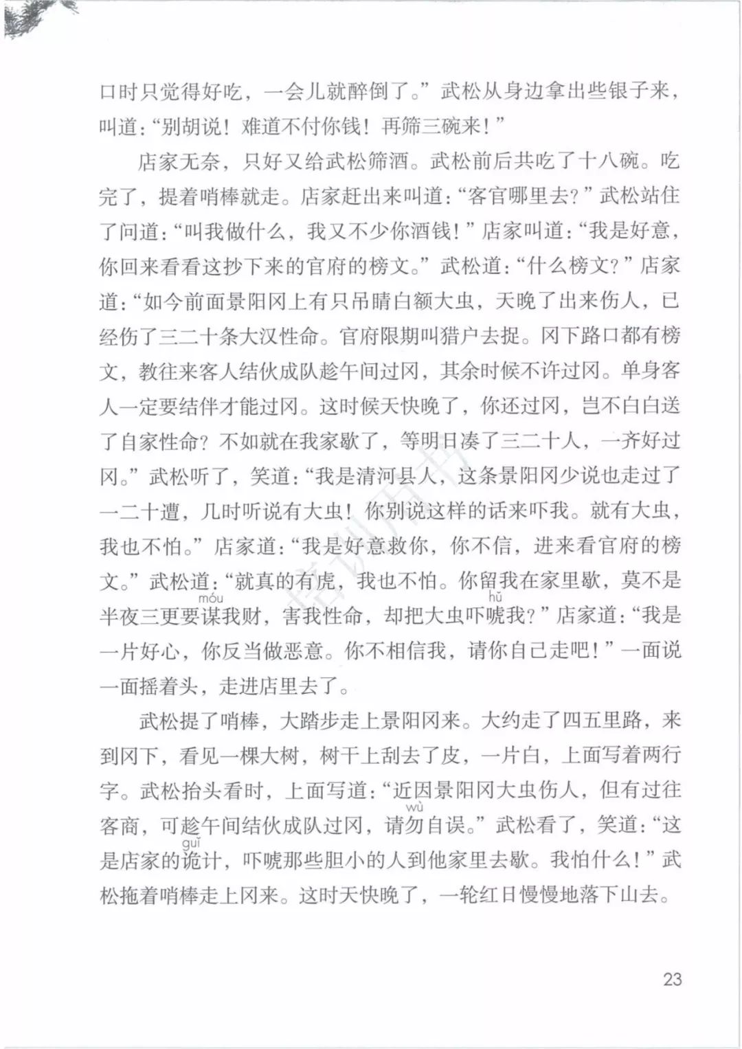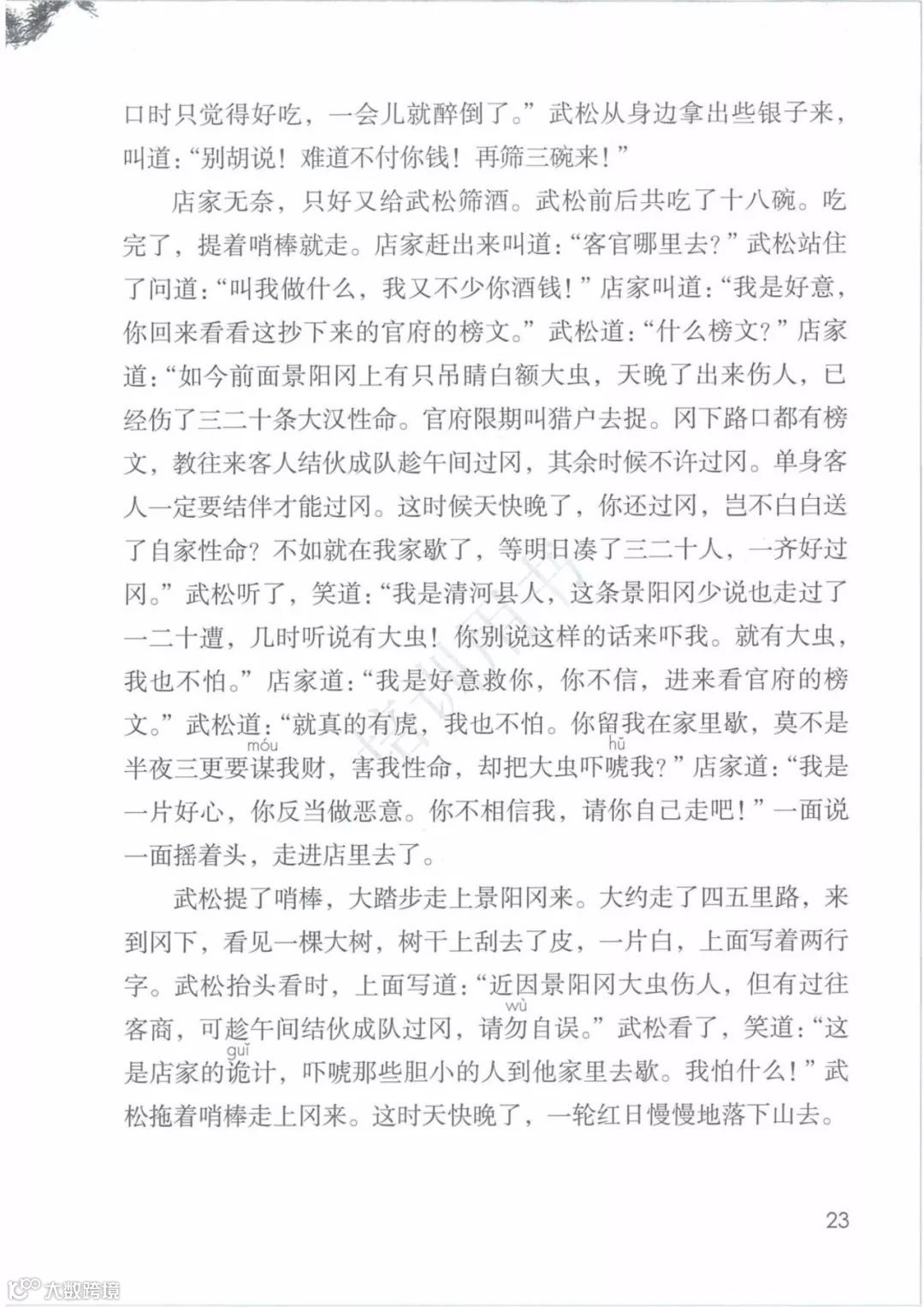 3、武松想∶“转身回酒店吧,一定会叫店家耻笑,算不得好汉,不能回去。”细想了一回,说道∶“怕什么,只管上去,看看怎么样。”