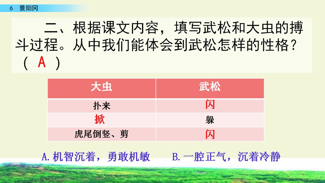 2. ①武松只一躲,躲在一边。 ②武松却又闪在一边。
