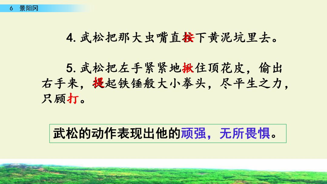 4.从“揪、按、踢、提、打”等几个动词,你看到了一个怎样的武松?