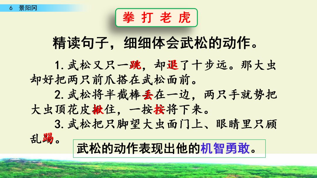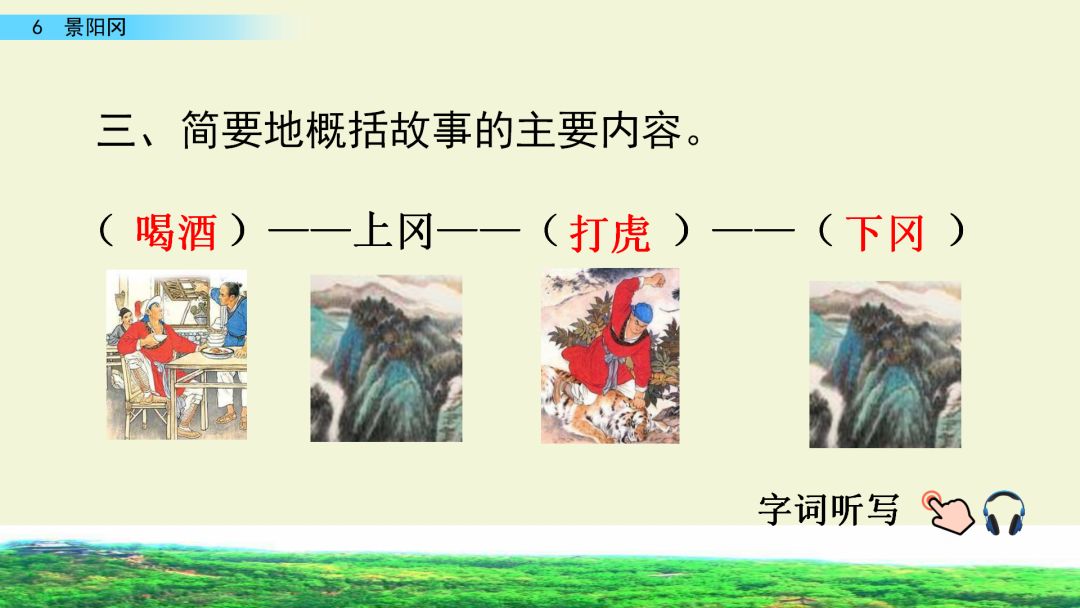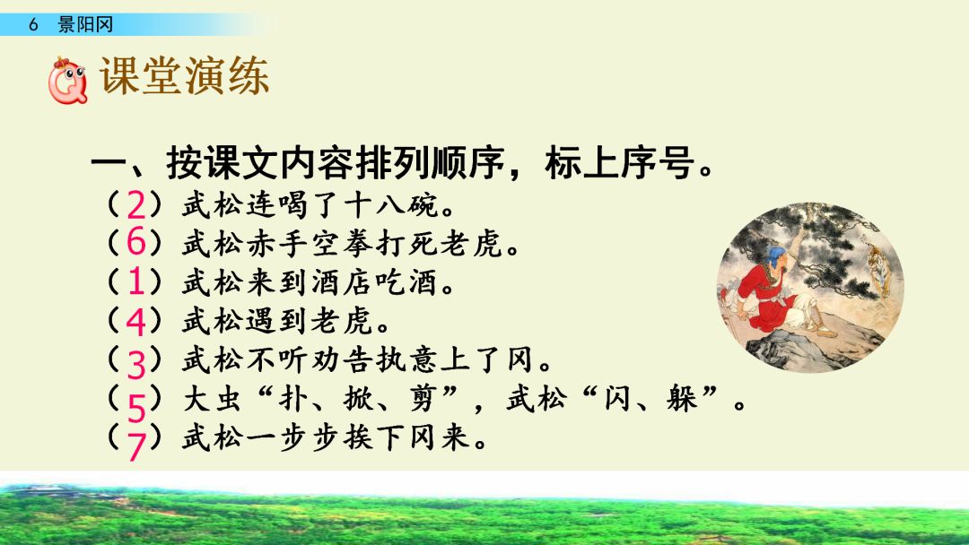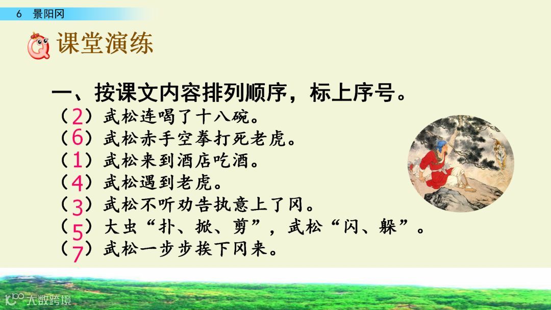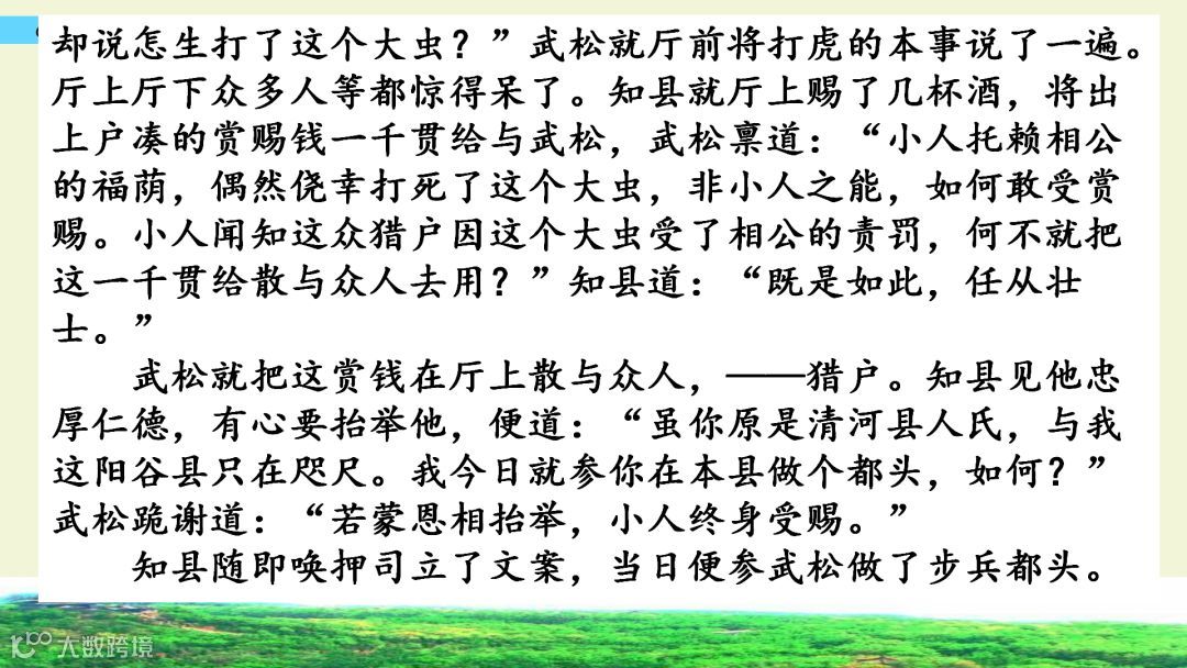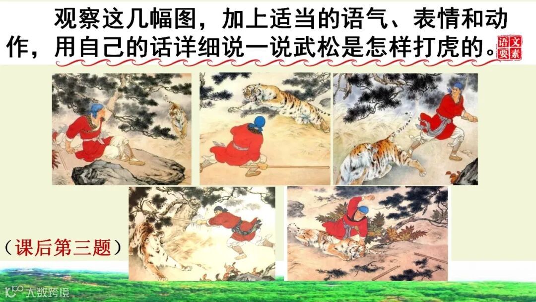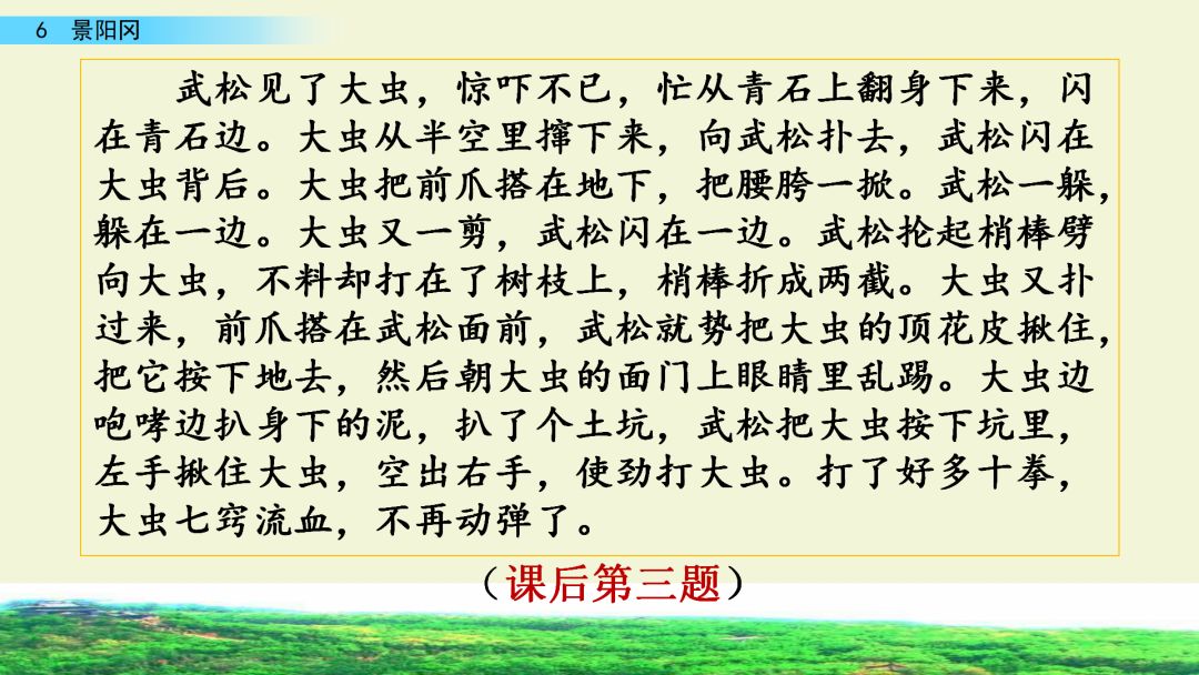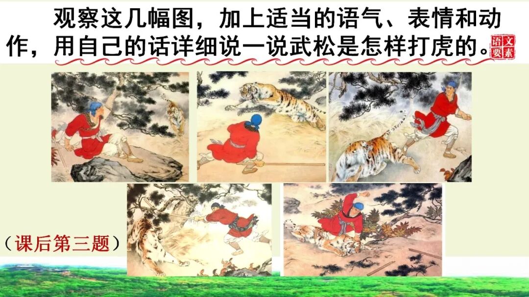 3、用自己的话详细讲述武松打虎的部分,可以加上适当的语气、表情和动作。